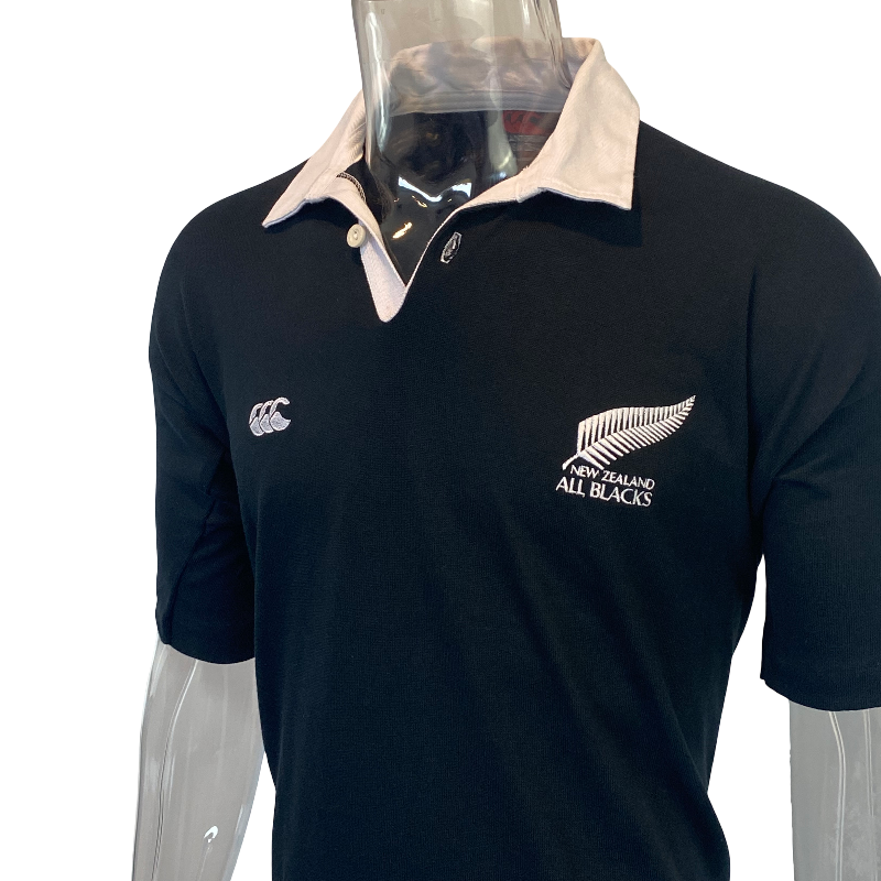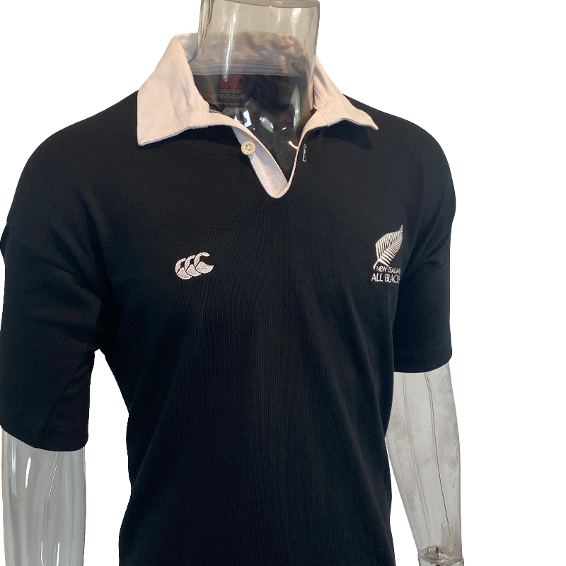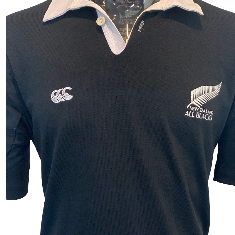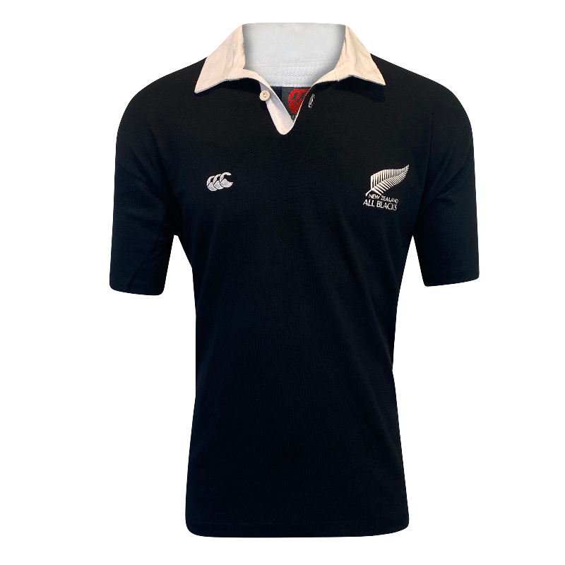 A true collector’s piece, this jersey is in excellent new condition, featuring the classic all-black body with iconic white collar. Made in New Zealand, it’s a perfect addition for any All Blacks supporter or serious rugby memorabilia collection.