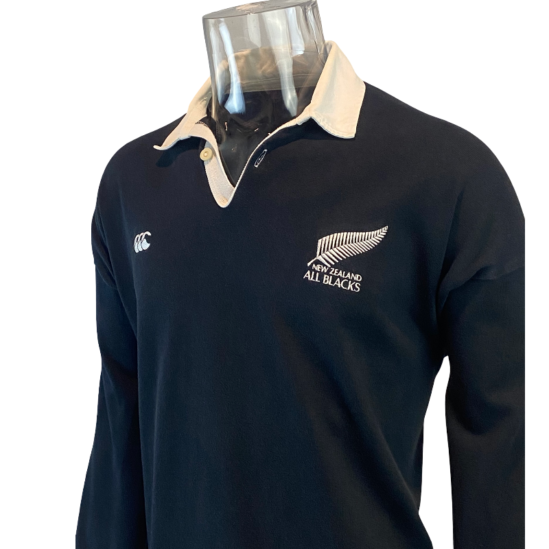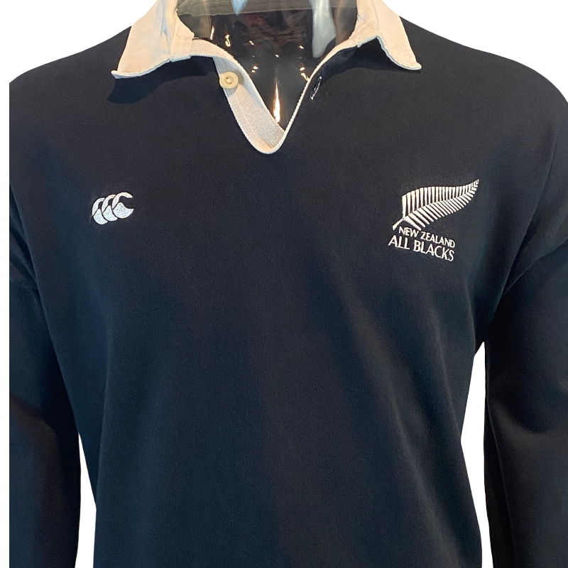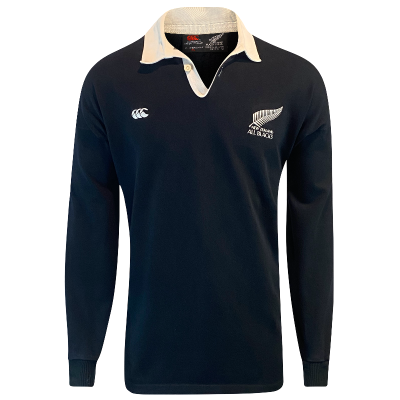 This classic 1993 All Blacks long sleeve jersey by Canterbury is a fantastic example from the amateur era of New Zealand rugby. Made in New Zealand and featuring the timeless black design with the traditional white collar, it represents the simple, iconic look that made the All Blacks jersey one of the most recognizable in world sport. Jerseys from the early 1990s remain underrated pieces for collectors, offering a true throwback to a period before the professional era transformed the game.