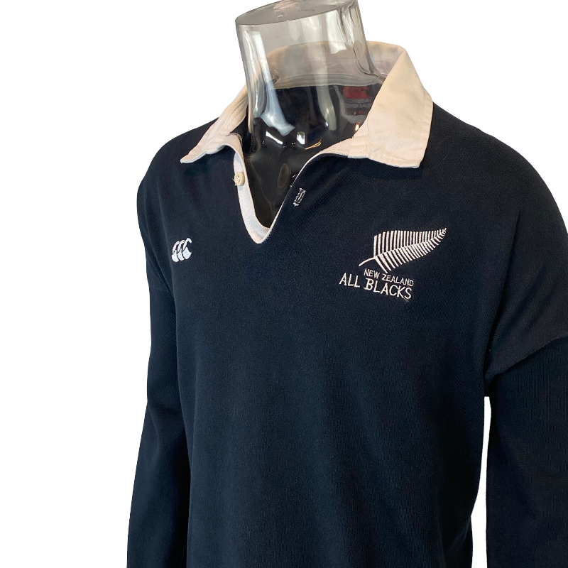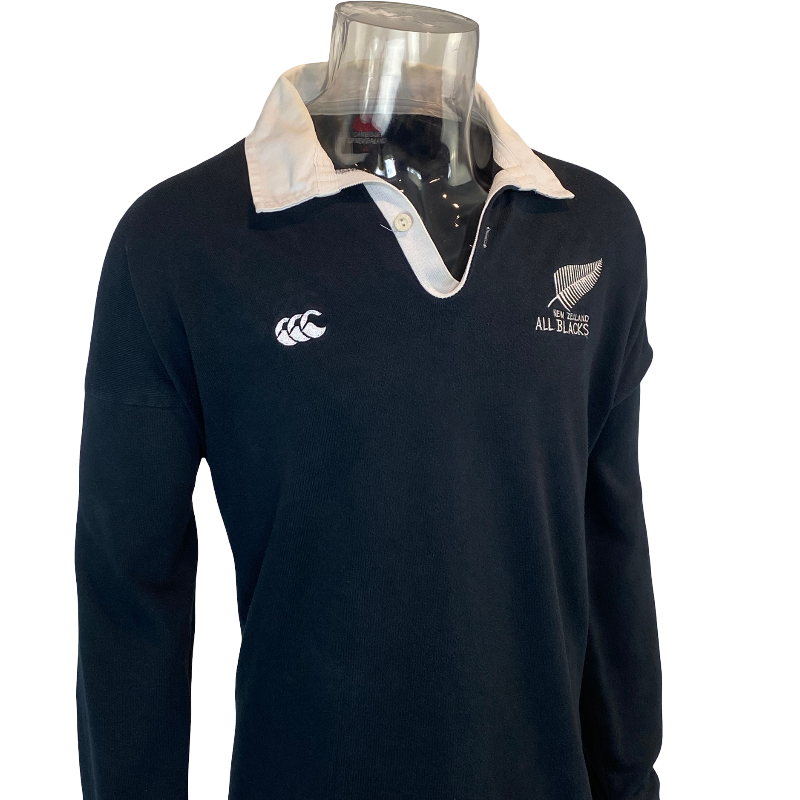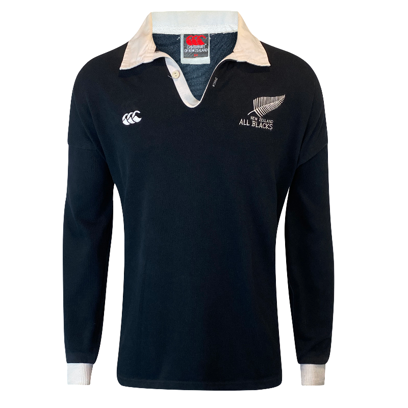 Constructed from extremely heavy-duty cotton and weighing over 700 grams, this jersey reflects the durability and build quality Canterbury was known for during the amateur era. The body of the jersey is in excellent condition with no major flaws, with only minor discolouration to the white collar, a common and expected trait on white cotton from this period. A highly collectible piece for those who appreciate subtle variations and regional differences in classic All Blacks jerseys.