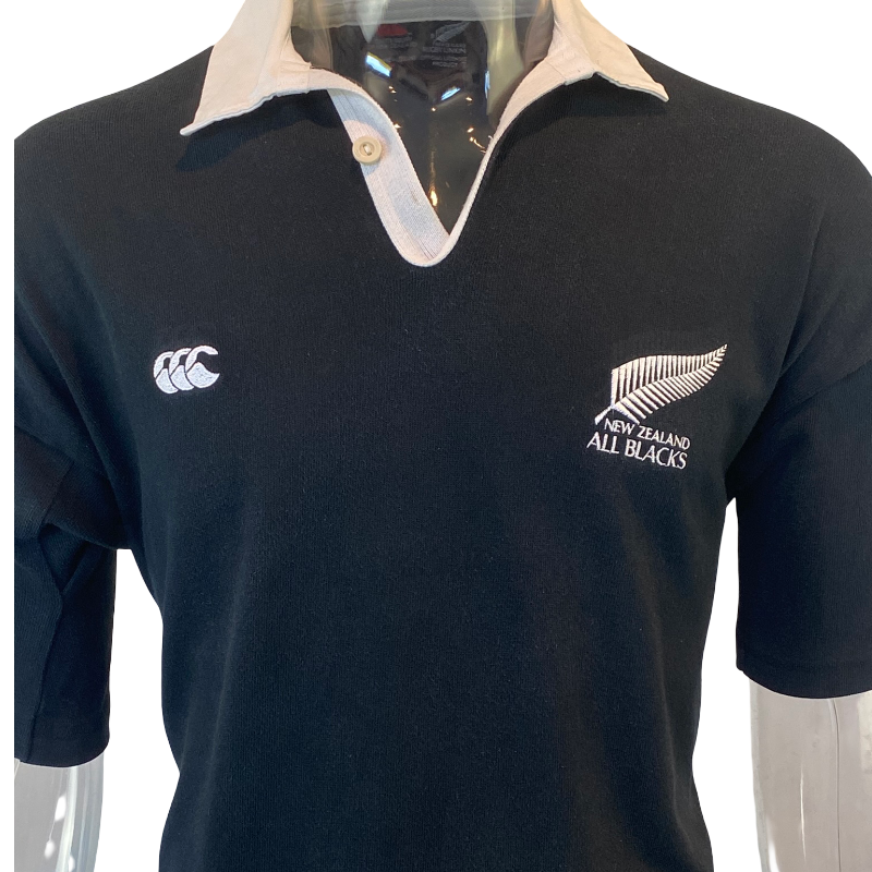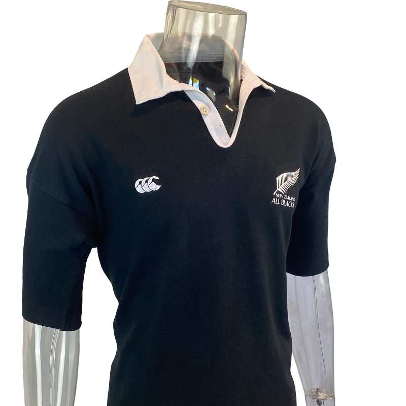 Presented in excellent condition, the black remains deep with no wash fade and the white collar has cleaned up perfectly. A popular and increasingly hard-to-find vintage All Blacks jersey, ideal for collectors or fans wanting an authentic pre-sponsorship era piece.
