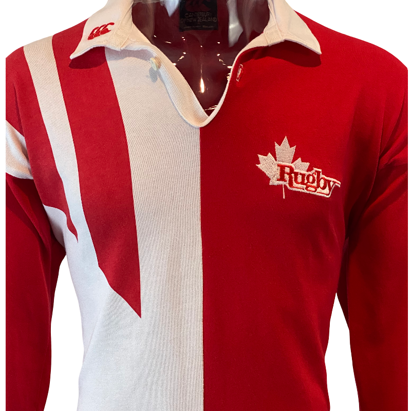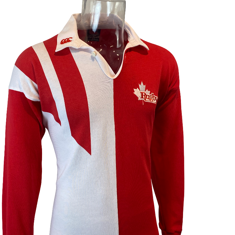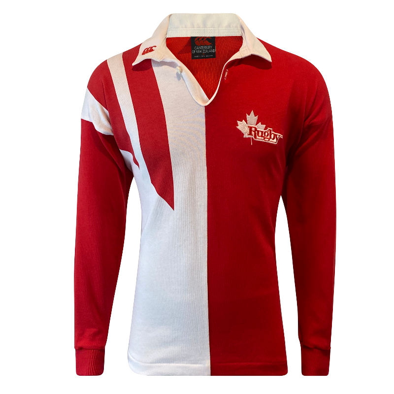 This 1993 Canada Rugby Jersey by Canterbury of New Zealand is one of the most sought-after vintage Canadian rugby shirts in existence. A true classic, this long sleeve design represents the golden era of Canadian rugby — the same jersey worn during their famous victories over Wales in Cardiff and England in 1993. Its bold red colour and traditional Canterbury styling make it instantly recognisable and deeply nostalgic for fans of that era.
