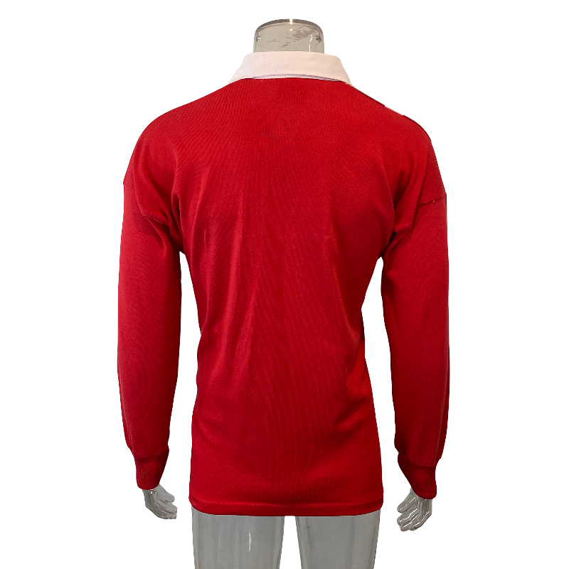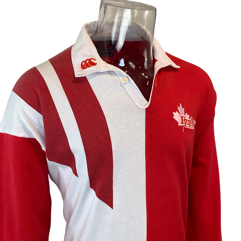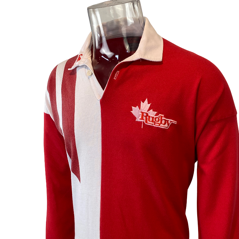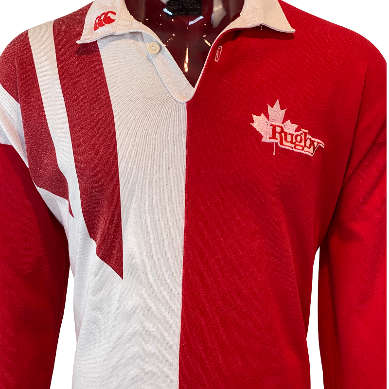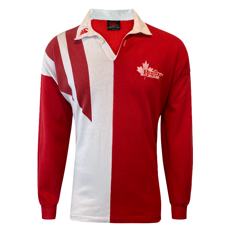 This 1993 Canada long sleeve jersey, made by Canterbury of New Zealand, is a classic piece from the golden era of Canadian rugby. In bold red and white, this jersey was worn during historic victories over Wales in Cardiff (1993) and France at home (1994) — a time when Canadian rugby was at its peak. The design is simpler than the wild 1995 RWC version, but it represents some of the nation’s greatest on-field success. Made from high-quality materials, it remains in excellent condition with no significant flaws. Measures 72cm in length, making it slightly shorter than a standard tagged large.