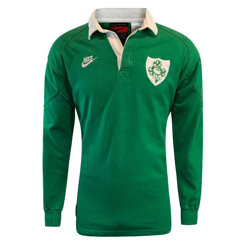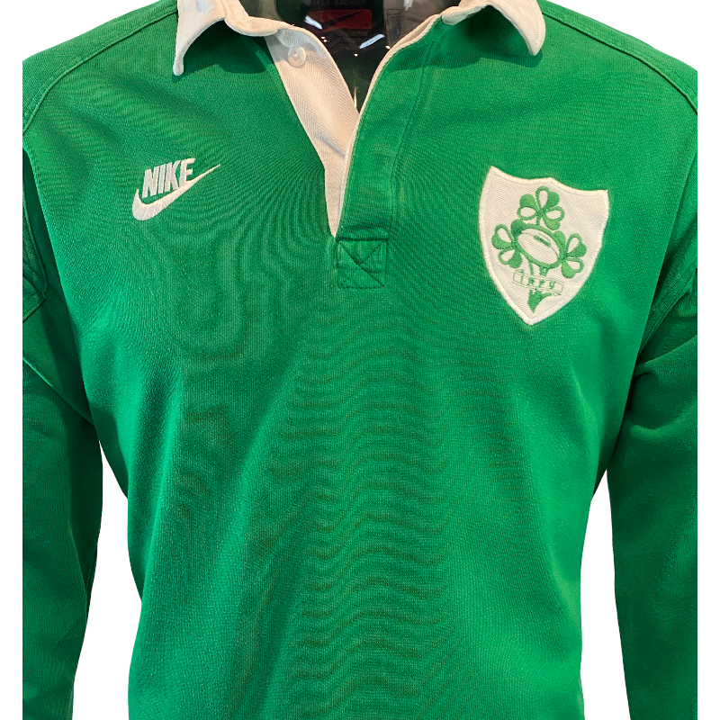 Up for grabs is 1993 Ireland long sleeve jersey. This jersey features the old-fashioned Nike logo and is a very heavy-duty jersey. Made in Portugal this jersey is in excellent condition. Tagged Large the jersey fits true to size. Here is your chance to score your jersey for the 2025 Lions tour or lock it in for the 2027 Rugby World Cup now.