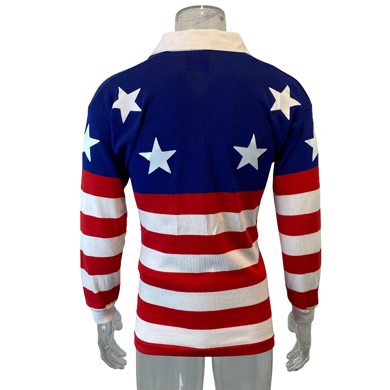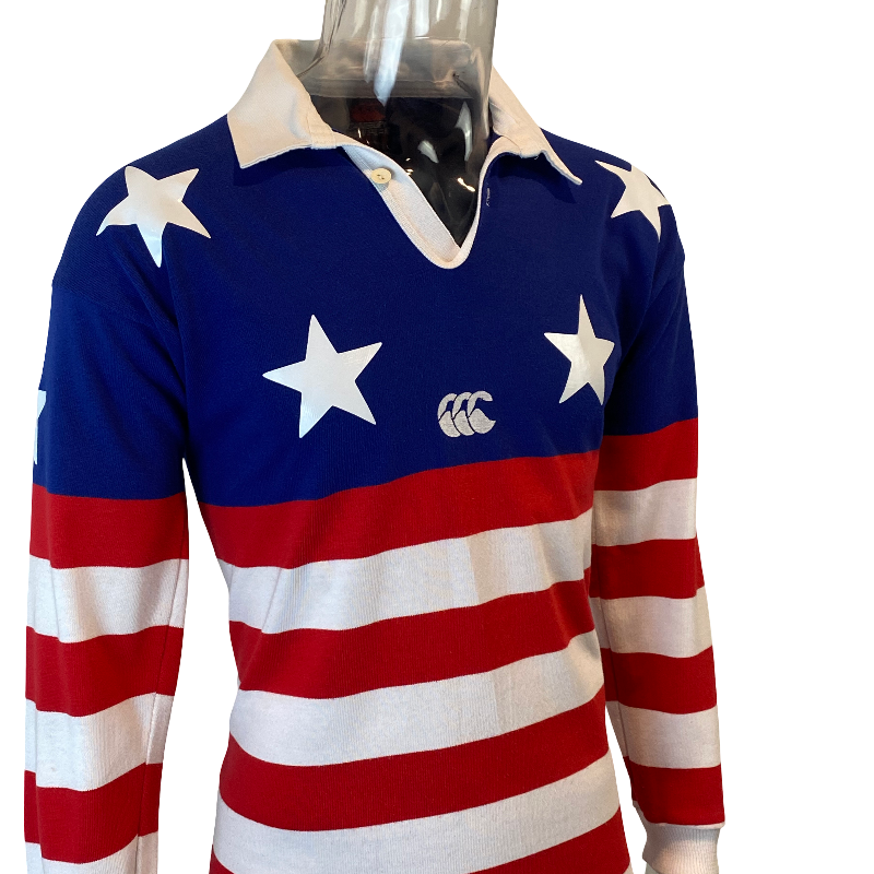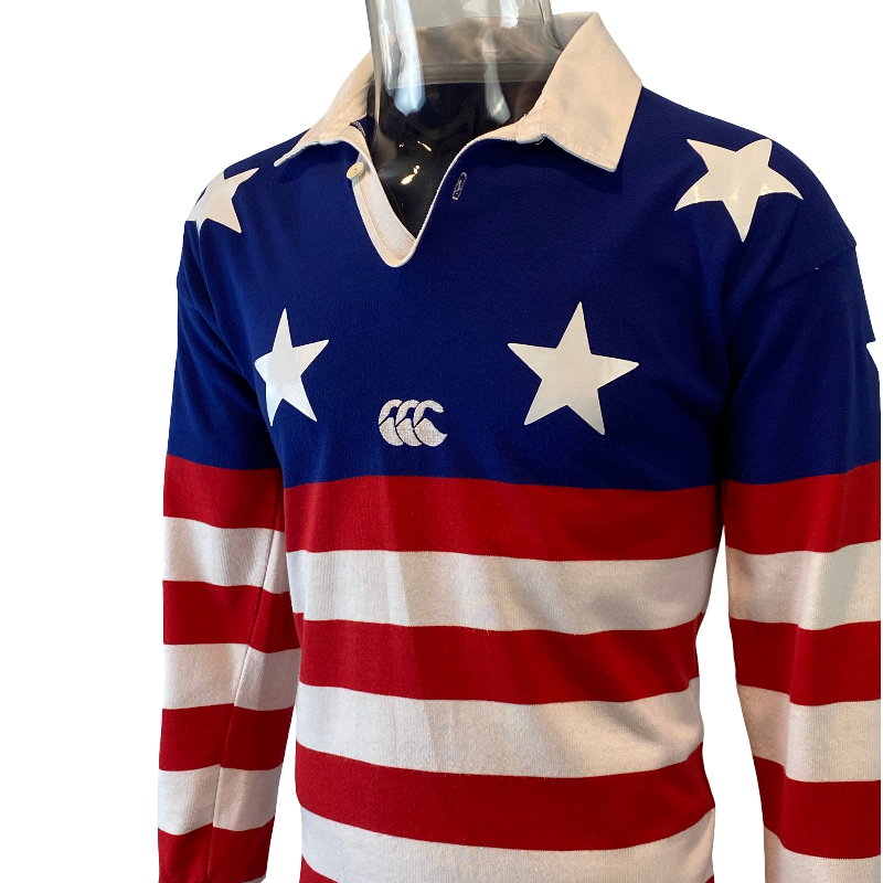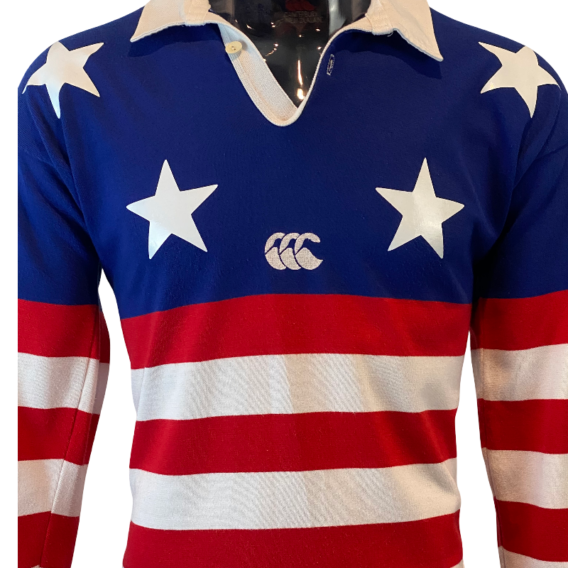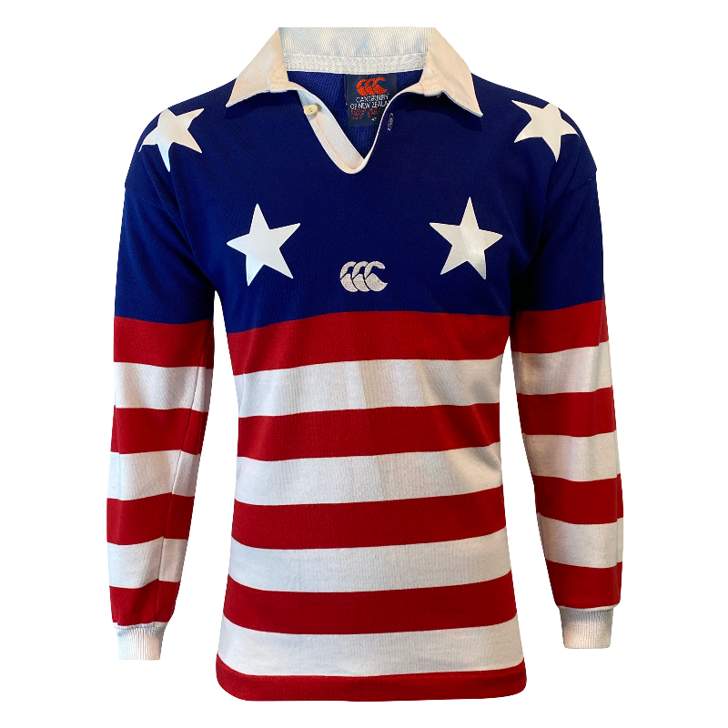 A truly iconic piece of American rugby history – this 1993 USA “Stars n Stripes” jersey, made by Canterbury of New Zealand, remains one of the most recognisable USA jerseys ever produced. First worn by the USA Stars n Stripes side in the 1987 Americas Cup, the same striking design was brought back in 1993 for the Sydney Sevens, where it captured global attention with its bold all-American look.
