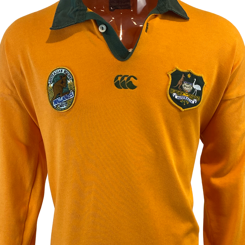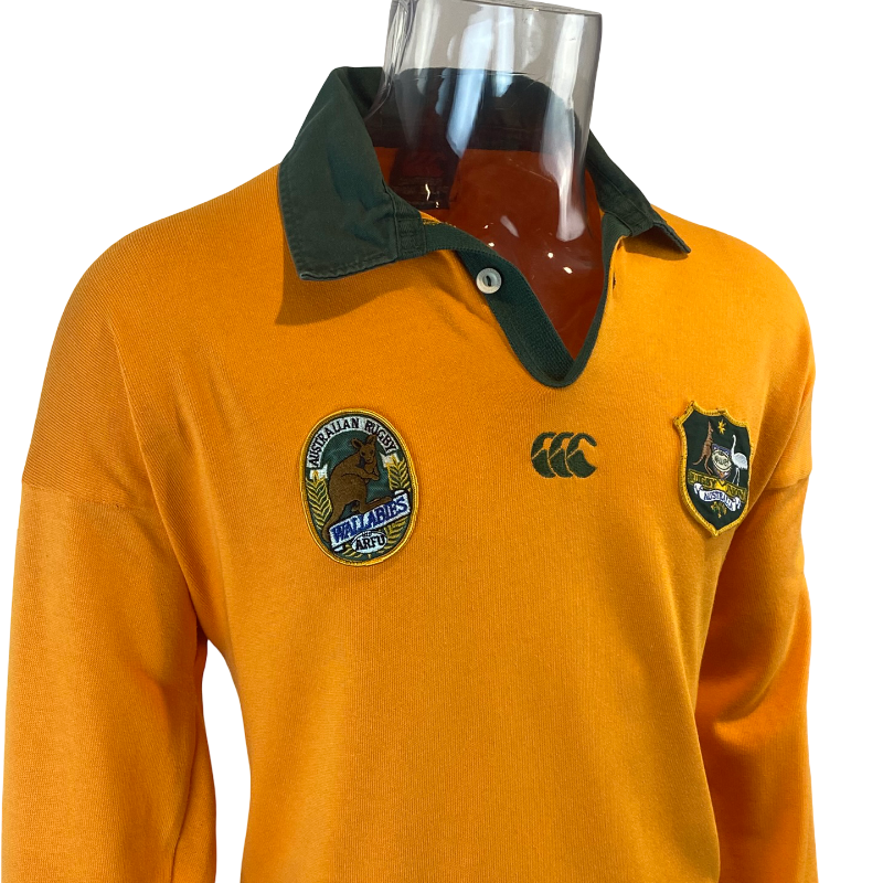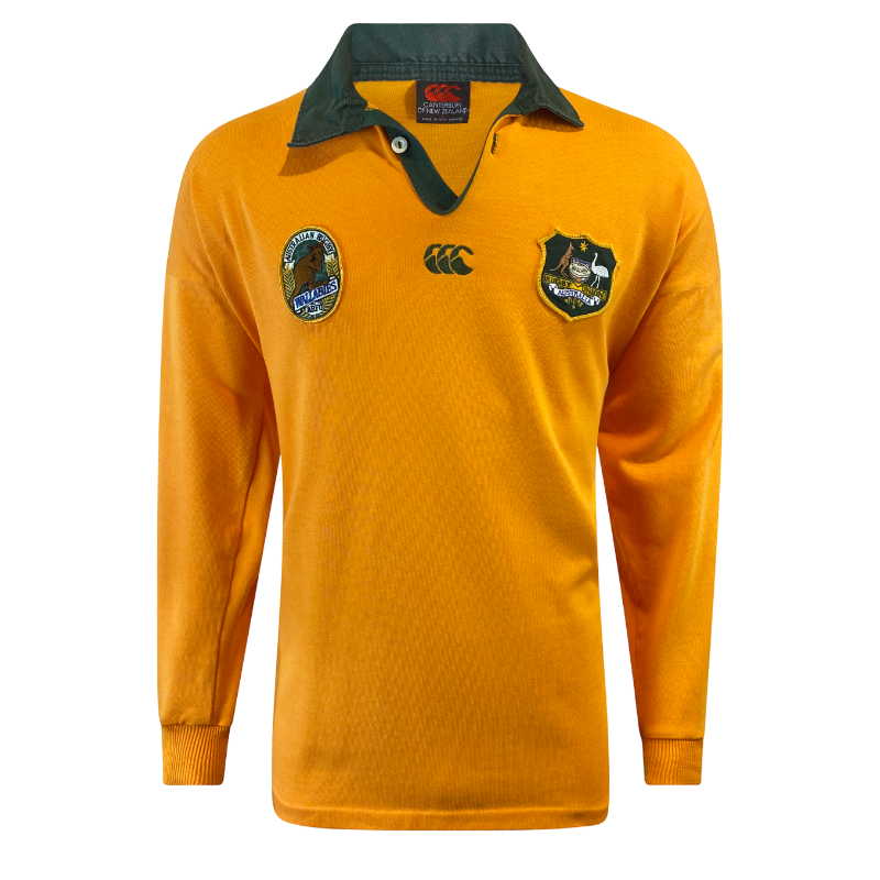 An iconic piece of Wallabies history, this 1993 long sleeve jersey is one of the most recognisable Australian designs of the modern era. Produced by Canterbury, this classic gold jersey was worn during a golden period for Australian rugby and remains a cornerstone piece for any serious collector. The clean, traditional look paired with the embroidered Wallabies crest and CCC branding gives it that unmistakable early 90s presence.