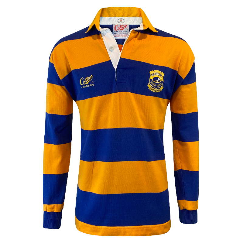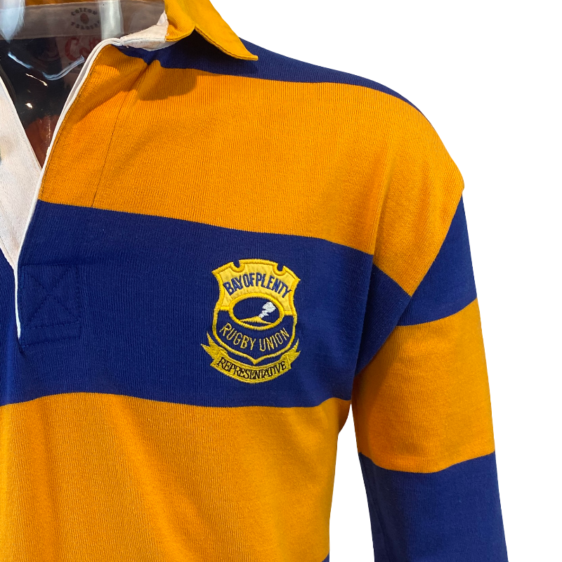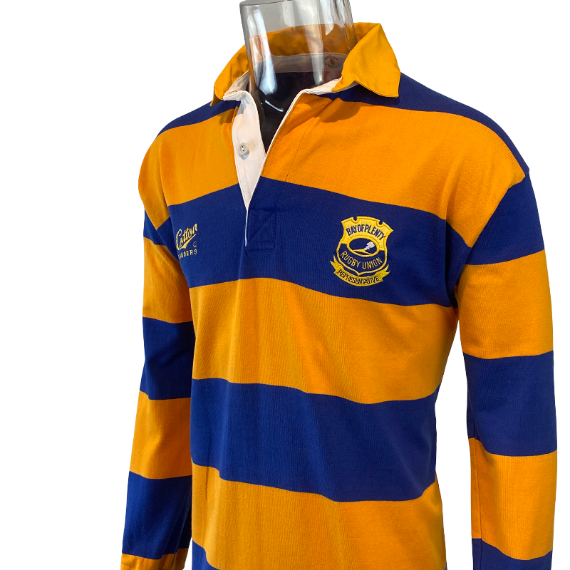 An exceptional and extremely rare piece of New Zealand provincial rugby history, this 1994 Bay of Plenty long sleeve jersey was produced by Cotton Traders and proudly made in New Zealand. Worn during the 1994 season — including fixtures against the touring Springboks — this design represents a memorable chapter in Bay of Plenty rugby. The player-worn version featured a Trust Bank sponsor patch applied over the Cotton Traders logo, a detail that highlights the era and adds to the historical significance of this release.