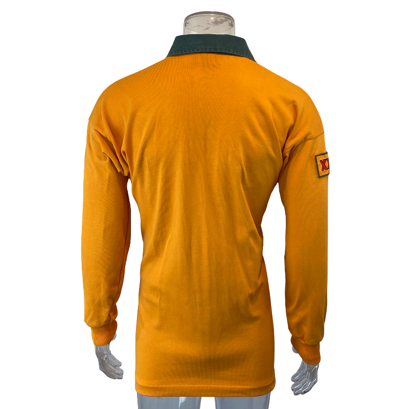 This 1994 Australia Wallabies long sleeve rugby jersey is a classic example of the iconic green and gold era that remains a fan favourite to this day. Made by Canterbury (CCC), this is one of the most popular Wallabies designs of the 1990s, especially in the long sleeve version which collectors consistently chase.