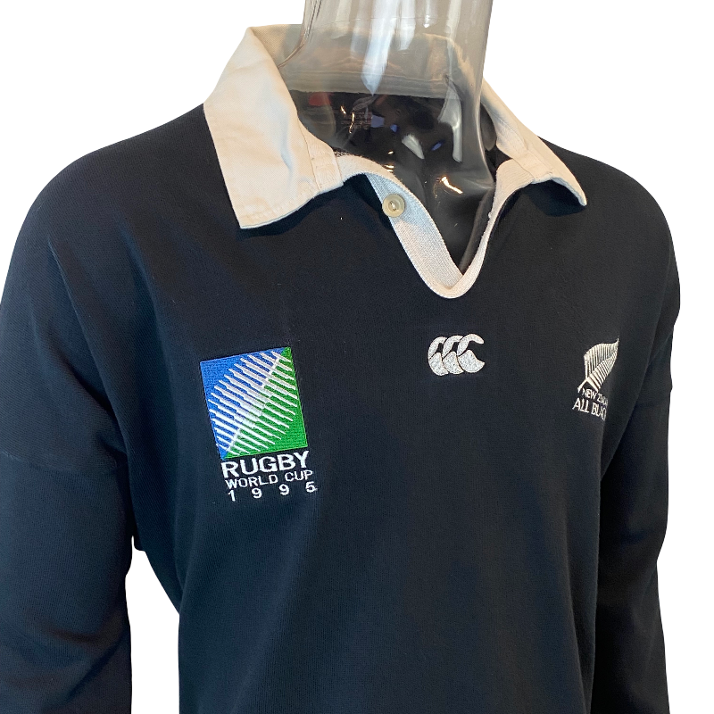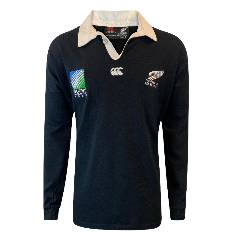 An iconic piece of rugby history — this 1995 All Blacks jersey is from one of the most unforgettable World Cups of all time. Made by Canterbury of New Zealand, this is the sought-after long sleeve version and was manufactured locally in New Zealand, not offshore like many others from the era.