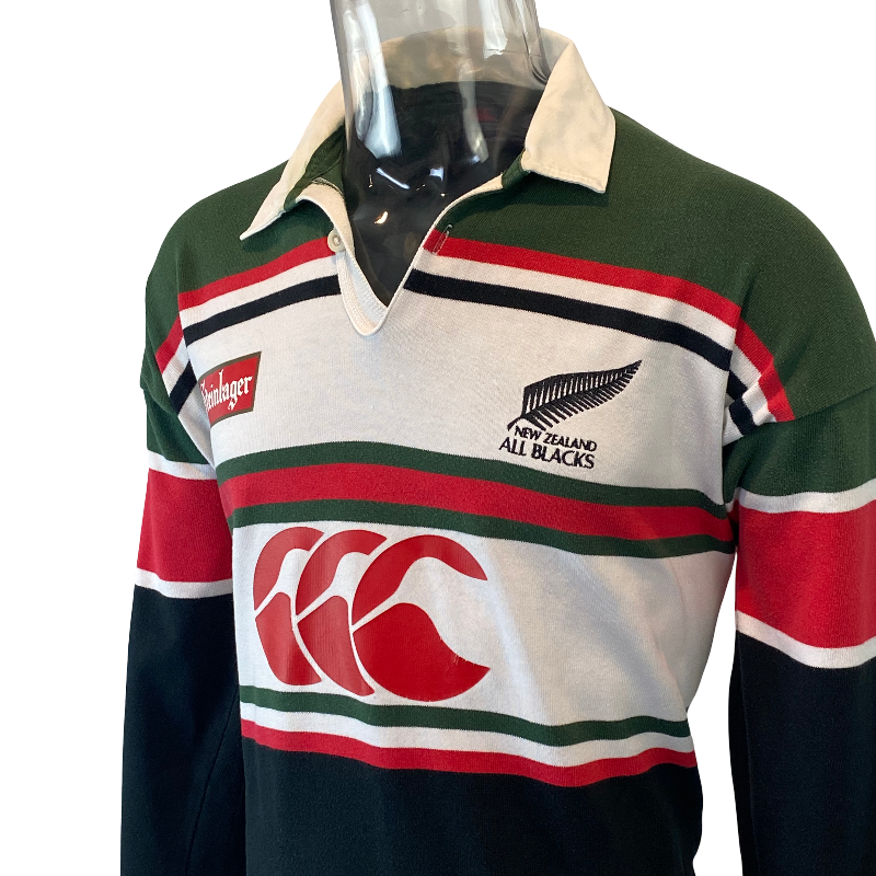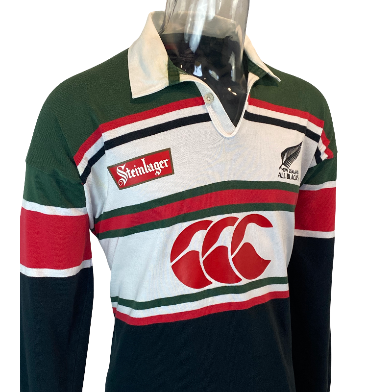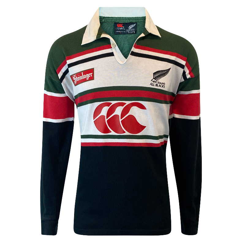 A sought-after 1996 All Blacks long sleeve training jersey by Canterbury of New Zealand. Unlike the on-field playing jerseys, the training tops of this era featured more detail, making them especially popular among collectors. This version carries the Steinlager sponsor logo alongside the CCC branding — both in perfect condition.