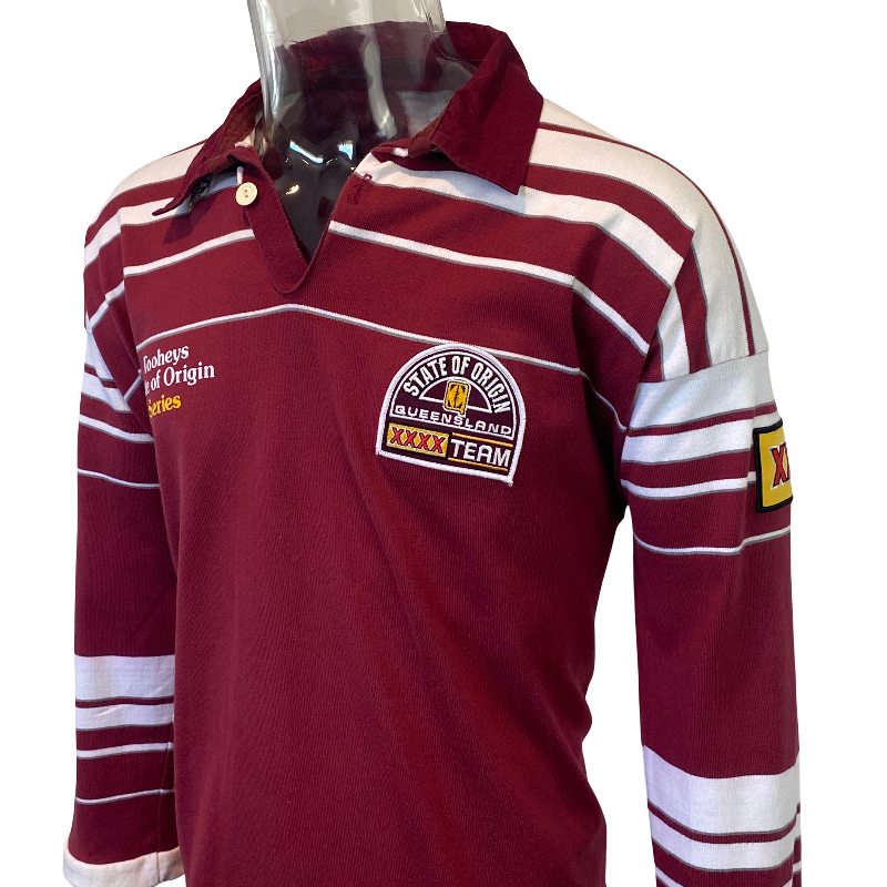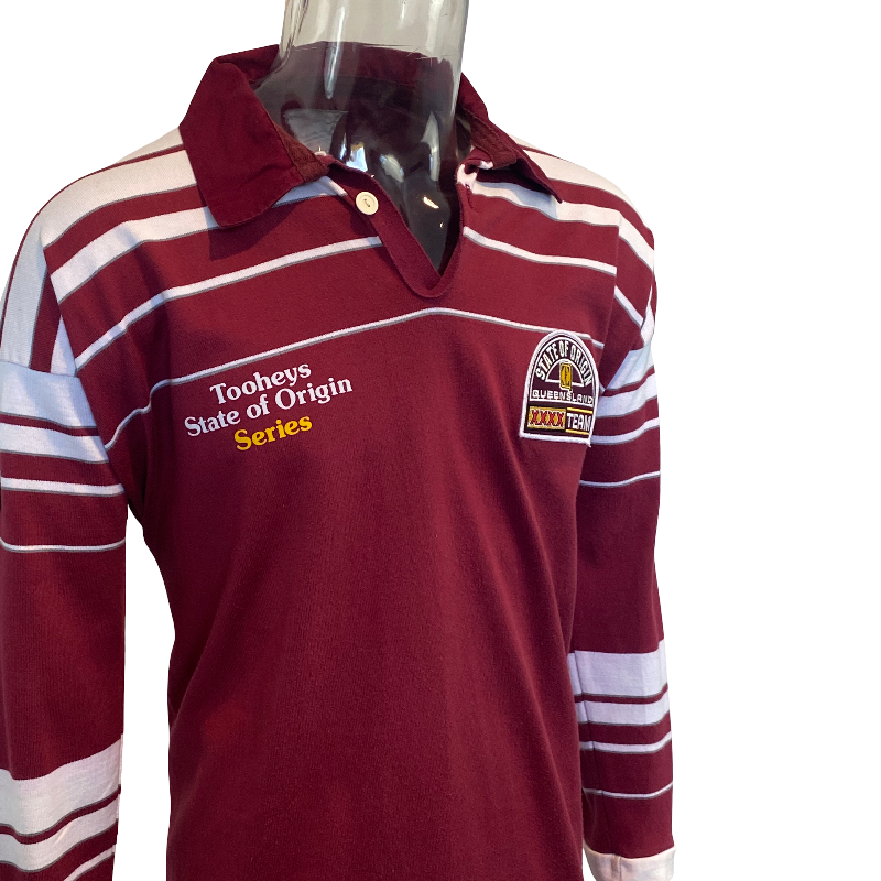 Condition: Excellent vintage condition, free of significant flaws. Tagged XXL but fits closer to a modern Large–XL. A rare example and a must-have piece for any passionate Maroons supporter or State of Origin collector.