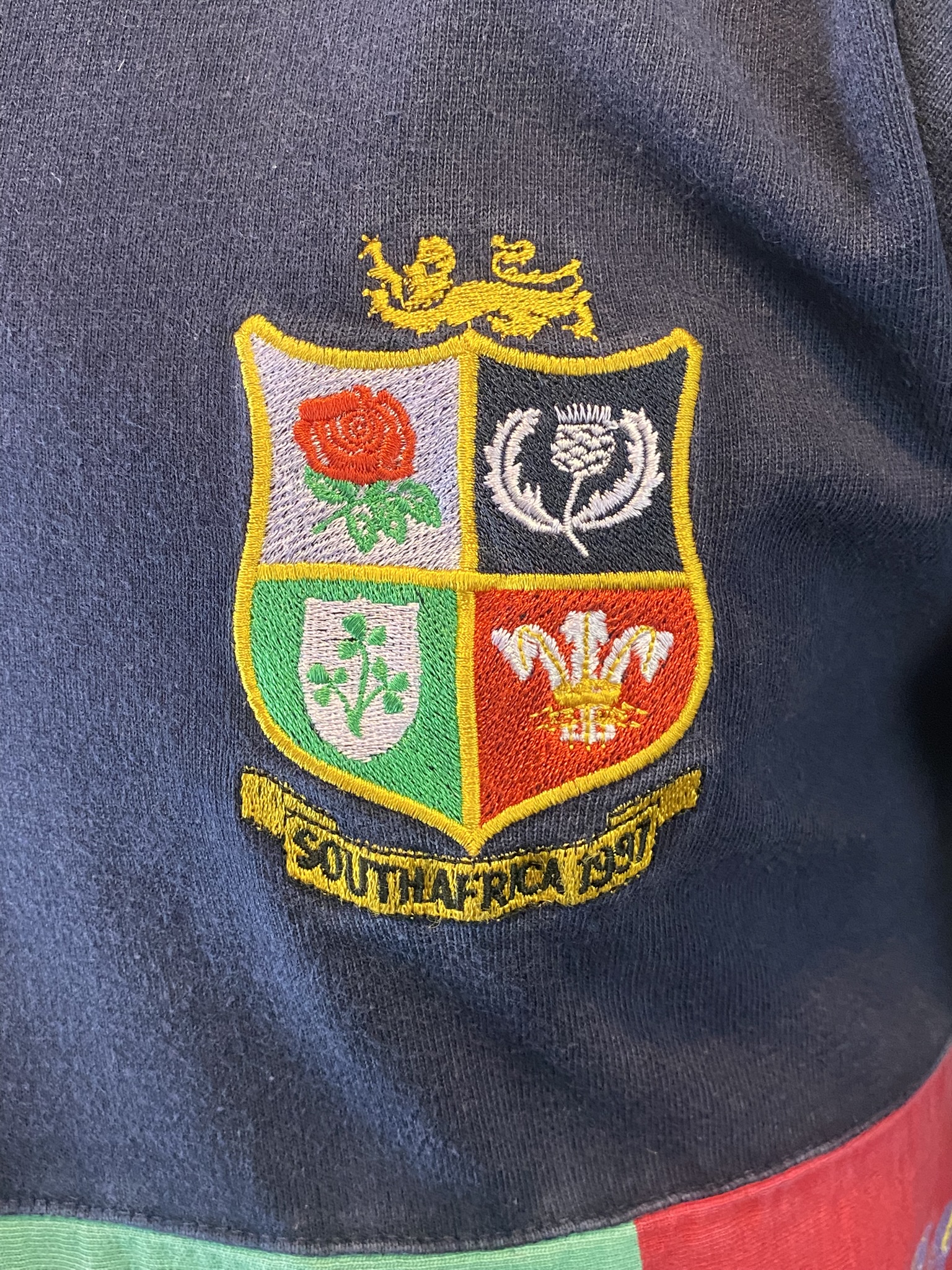 Despite the blemish, the jersey remains in very good condition overall — a genuine vintage item that perfectly captures the spirit of the victorious 1997 Lions tour.