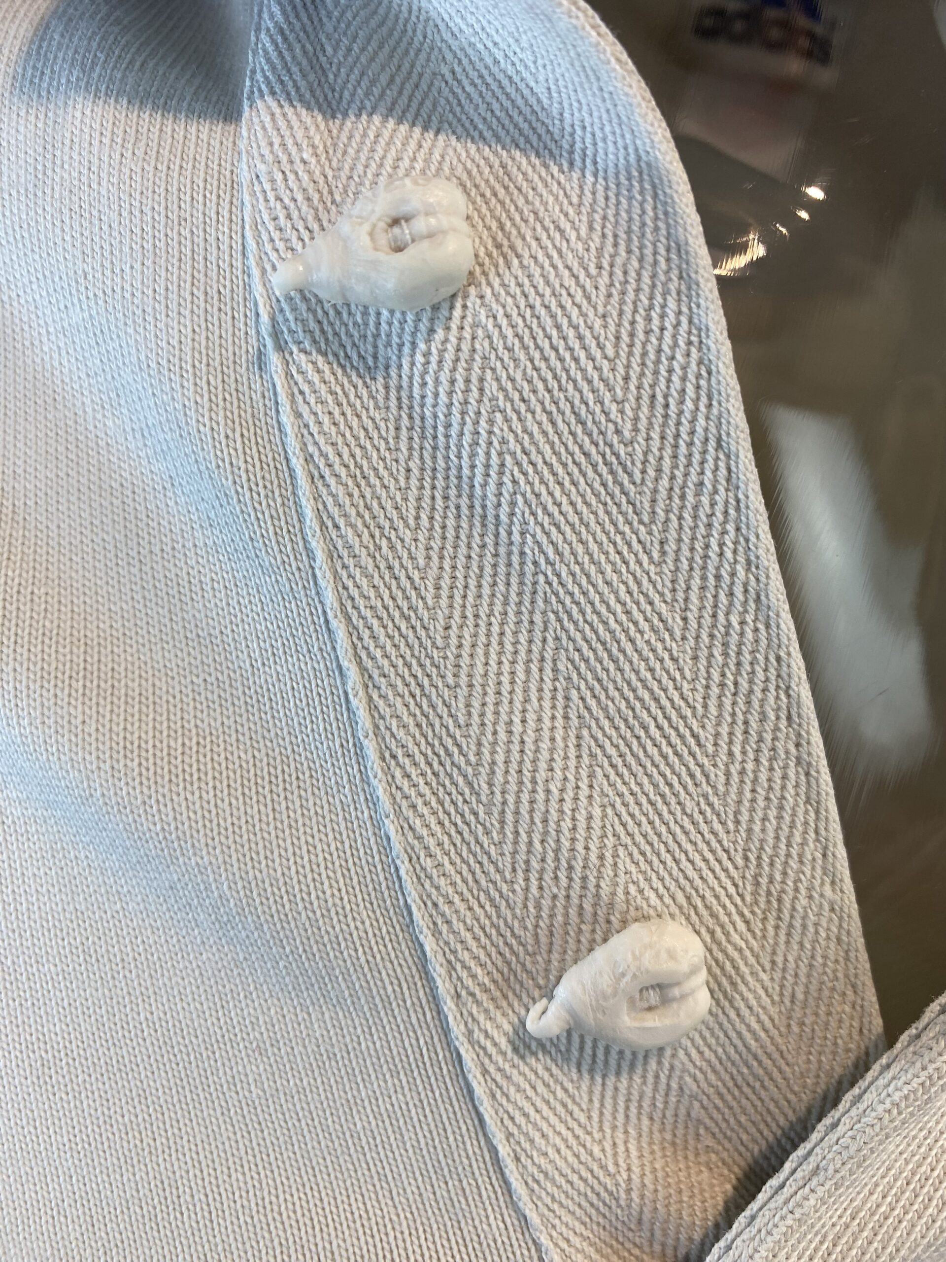 Condition is very good overall. The white fabric has faded slightly with age and washing, and the collar buttons have lost their original shape, but otherwise this jersey is in great shape and ready to wear or collect. While these jerseys tend to run big this jersey actually fits true to size, would even fit a medium.
