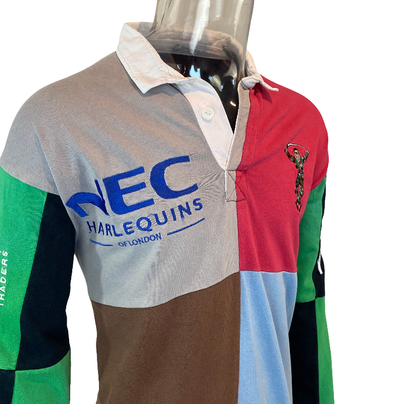 Throw it back to the late ’90s with this iconic 1997 Harlequins long sleeve jersey, made by Cotton Traders. Crafted from 100% heavyweight cotton, this is a true old-school rugby jersey — built to last and full of character. Featuring the traditional Harlequins quartered design and club colours, it’s a high-quality piece from a beloved era of the game. In excellent condition despite being over 28 years old, this jersey is a must-have for passionate Quins fans and vintage rugby collectors alike.