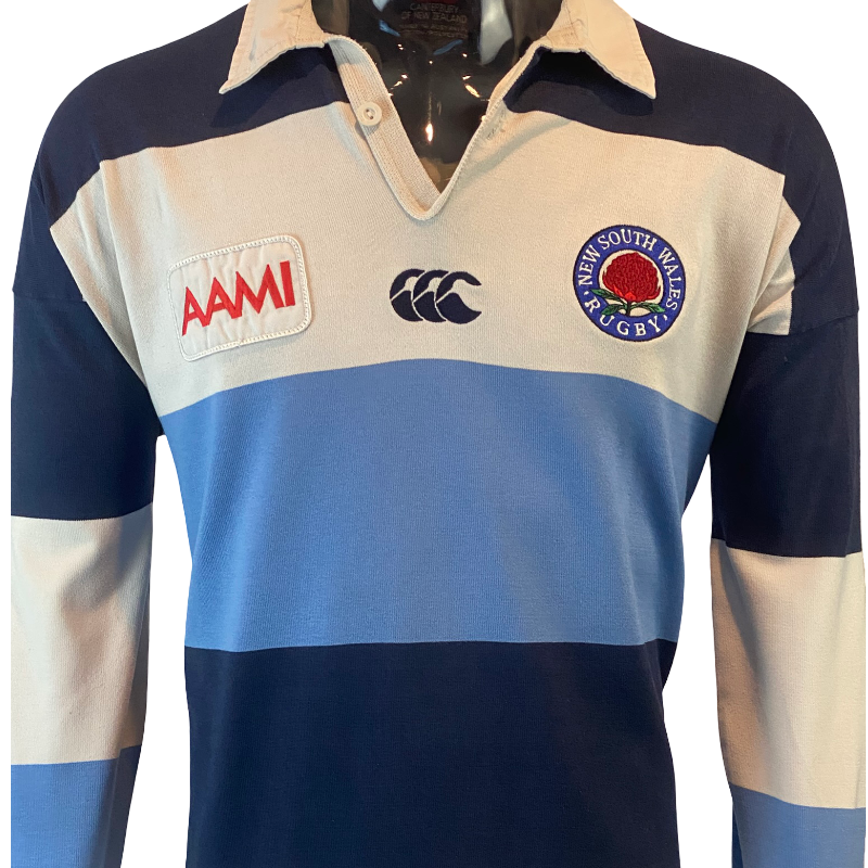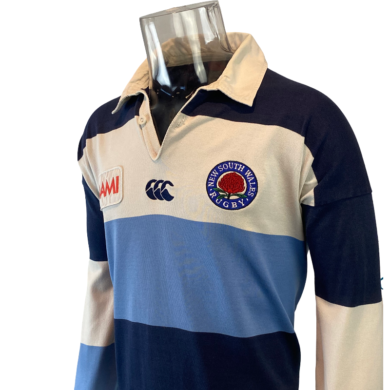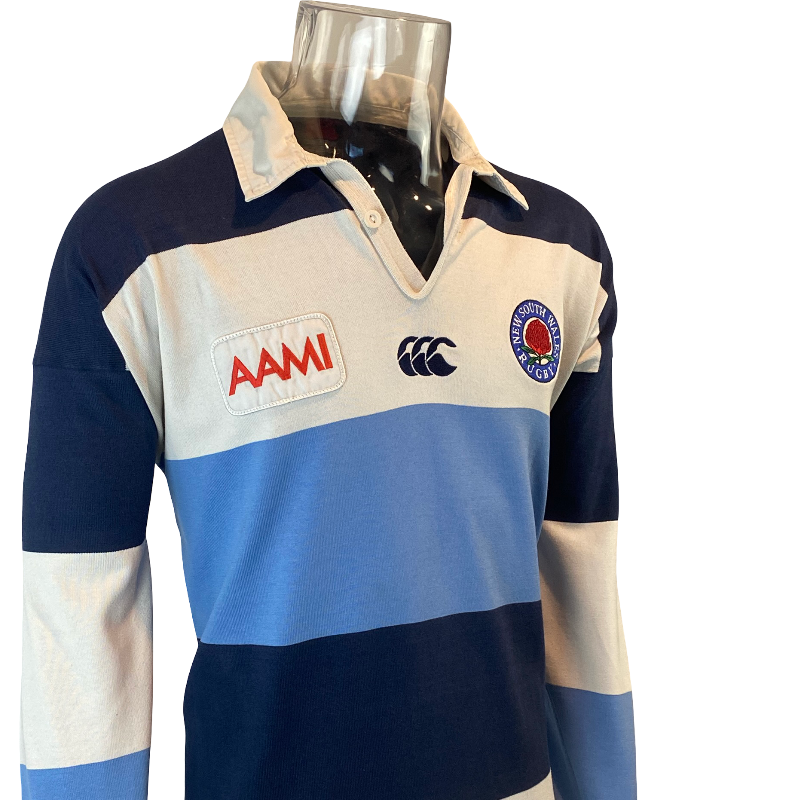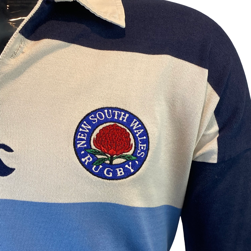 The 1997 New South Wales Waratahs long sleeve jersey by Canterbury represents a classic era of Australian provincial rugby. Made by CCC and proudly manufactured in Australia, this jersey features the iconic traditional hooped design in light blue, navy and white — a look synonymous with NSW Rugby throughout the late 1990s. A true Ballymore and Super Rugby era piece, this design remains one of the most recognisable Waratahs jerseys ever produced.