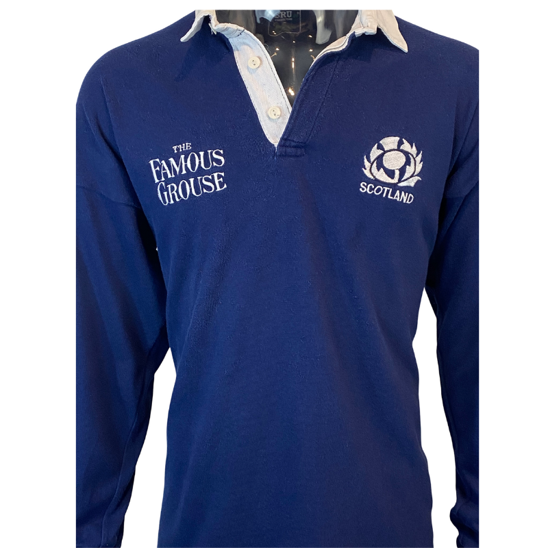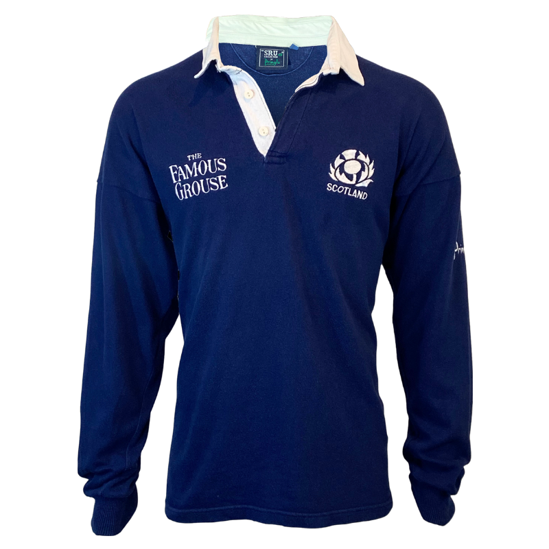 The first Scottish jersey to showcase the Famous Grouse logo offers a simple yet attractive design. This Pringle jersey is in excellent condition, free of any significant flaws.