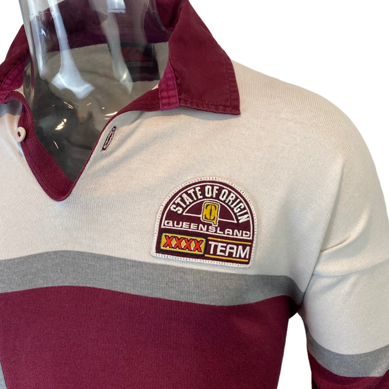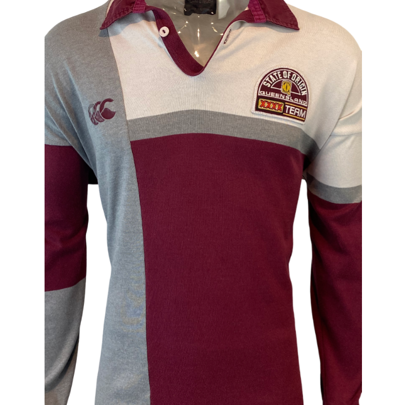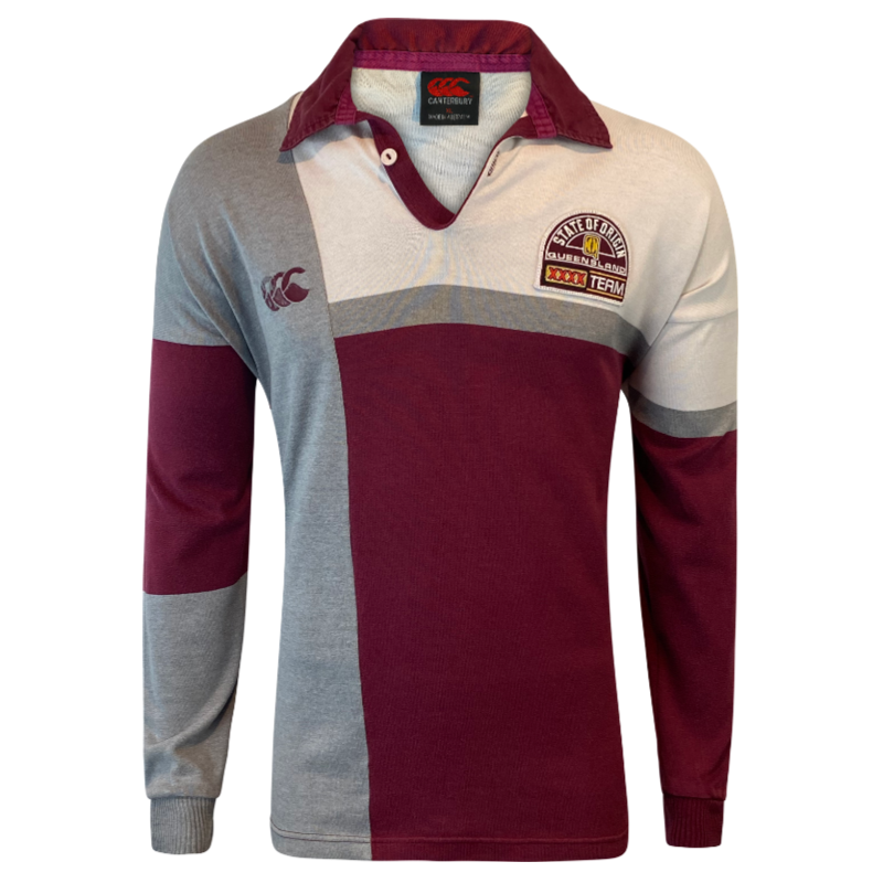 Here is a Queensland Maroons supporters jersey dating back to the late 1990’s. Made by Canterbury of New Zealand it is a high-quality jersey with an impressive design. The only flaw is some wear on the front CCC logo otherwise this vintage jersey is in excellent condition. Get ready for the 2025 State of Origin now with this unique Queensland Maroons jersey.