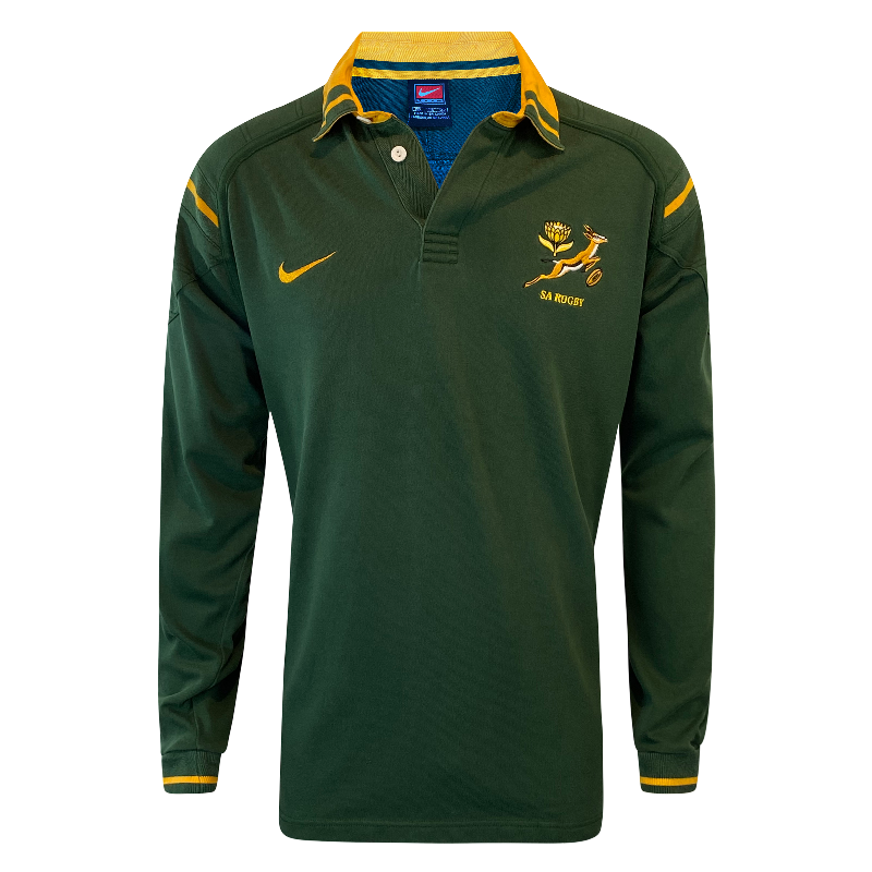 Up for grabs is this 1998 Springboks long sleeve jersey. This high-quality jersey made by Nike is 100% Cotton. It is a very heavy-duty jersey and is in excellent condition free of any significant flaws. Tagged XXL the jersey is a very big fitting jersey and fits true to size.