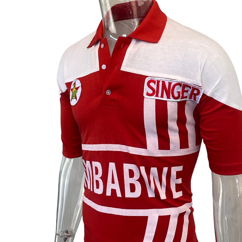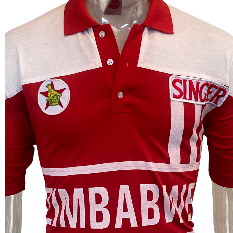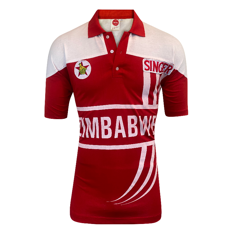 The bold red-and-white design, the classic Singer sponsor, and the unmistakable Zimbabwe crest give this shirt real vintage character. As a genuine piece of player-worn international kit, it carries that extra level of historical weight that collectors love.