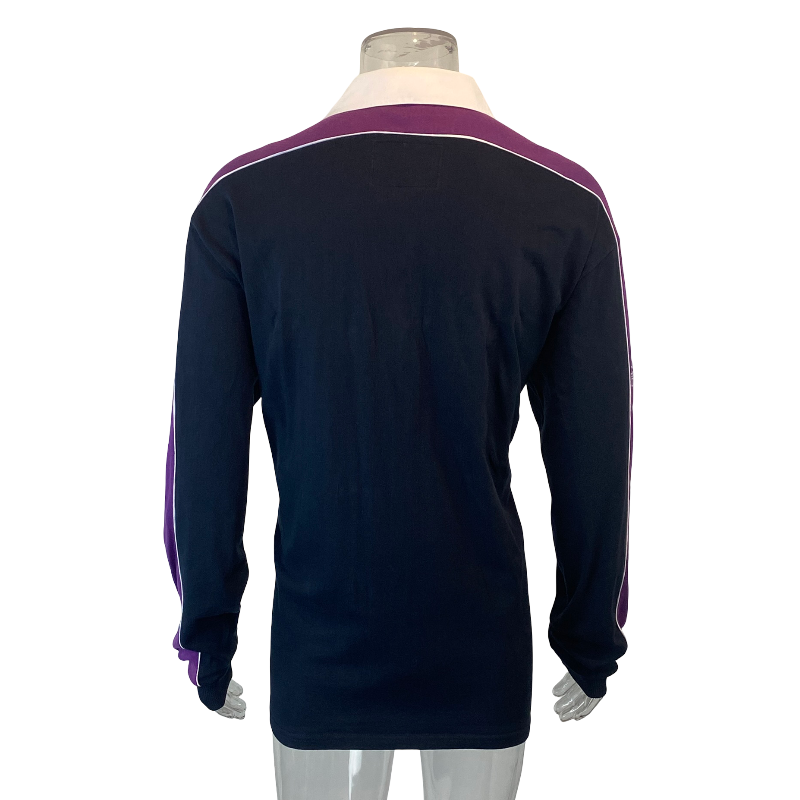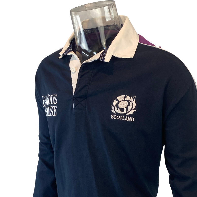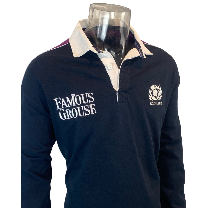 This 1999 Scotland long sleeve jersey by Cotton Oxford is a heavyweight, 100% cotton classic from one of the most memorable eras in Scottish rugby. Built to traditional standards with a substantial feel, this jersey reflects the quality and durability Cotton Oxford was known for, with a clean navy body that has held up exceptionally well over time. The overall condition is excellent with no wash fade, retaining its deep colour and sharp embroidered details.