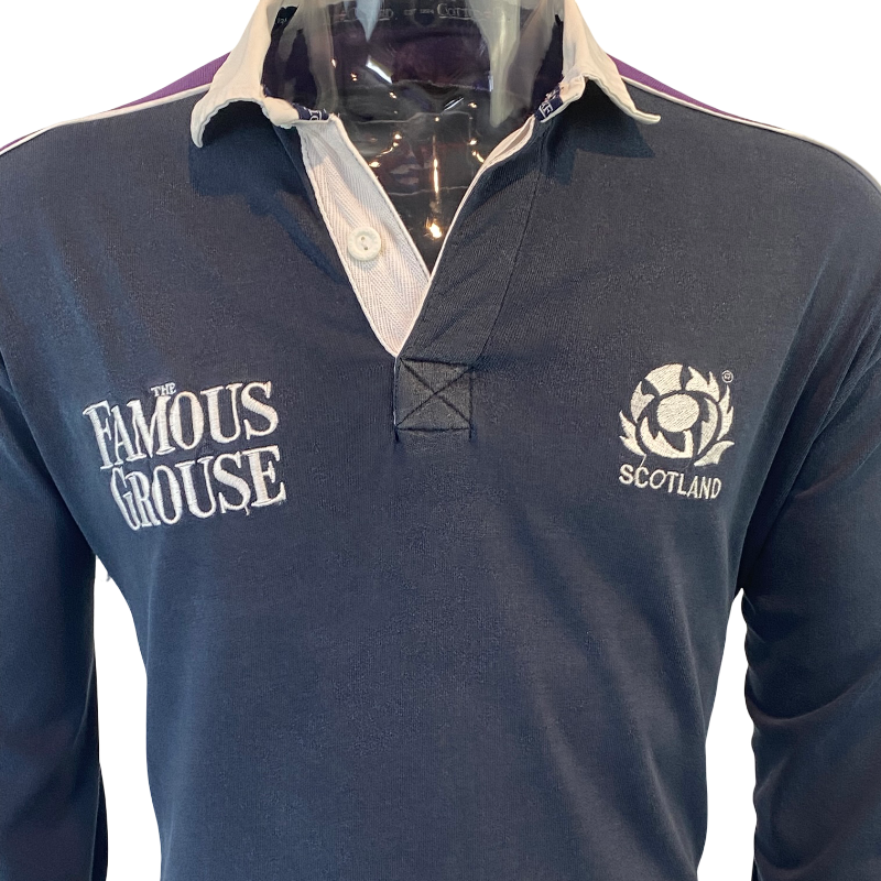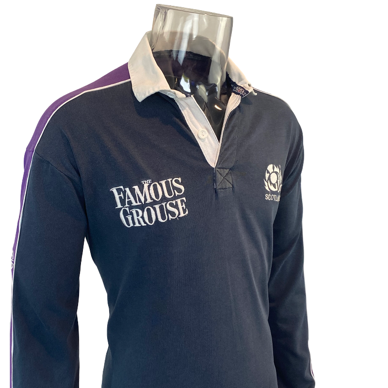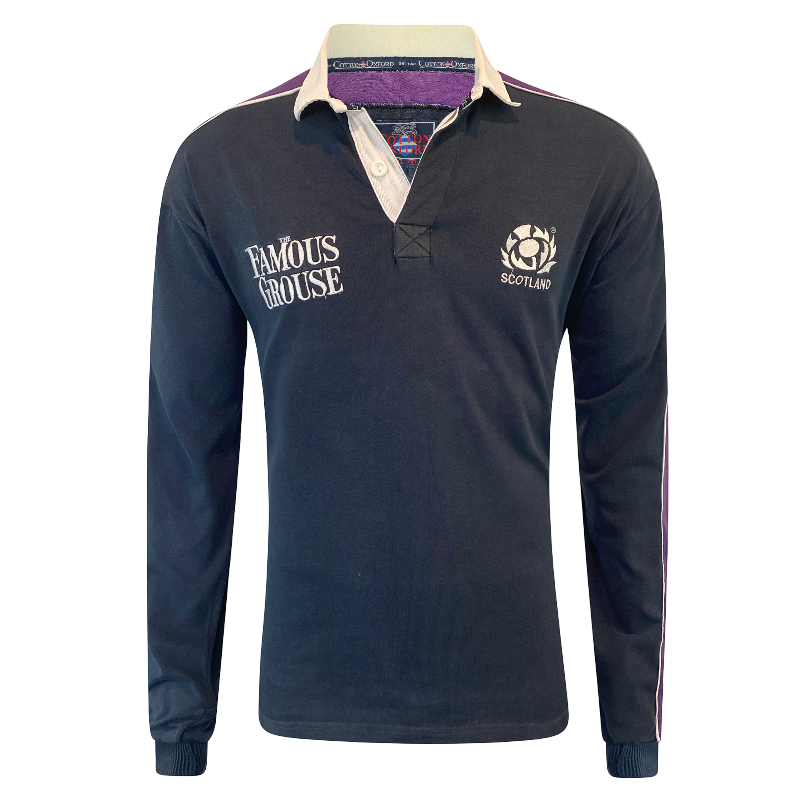 This classic 1999 Scotland long sleeve rugby jersey by Cotton Oxford is a throwback to one of the proudest moments in Scottish rugby history. Worn during the era when Scotland claimed the 1999 Five Nations Championship, the jersey features the traditional navy design with embroidered Scotland crest and the iconic Famous Grouse sponsor, a combination that instantly evokes memories of Murrayfield during the late 1990s.