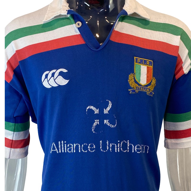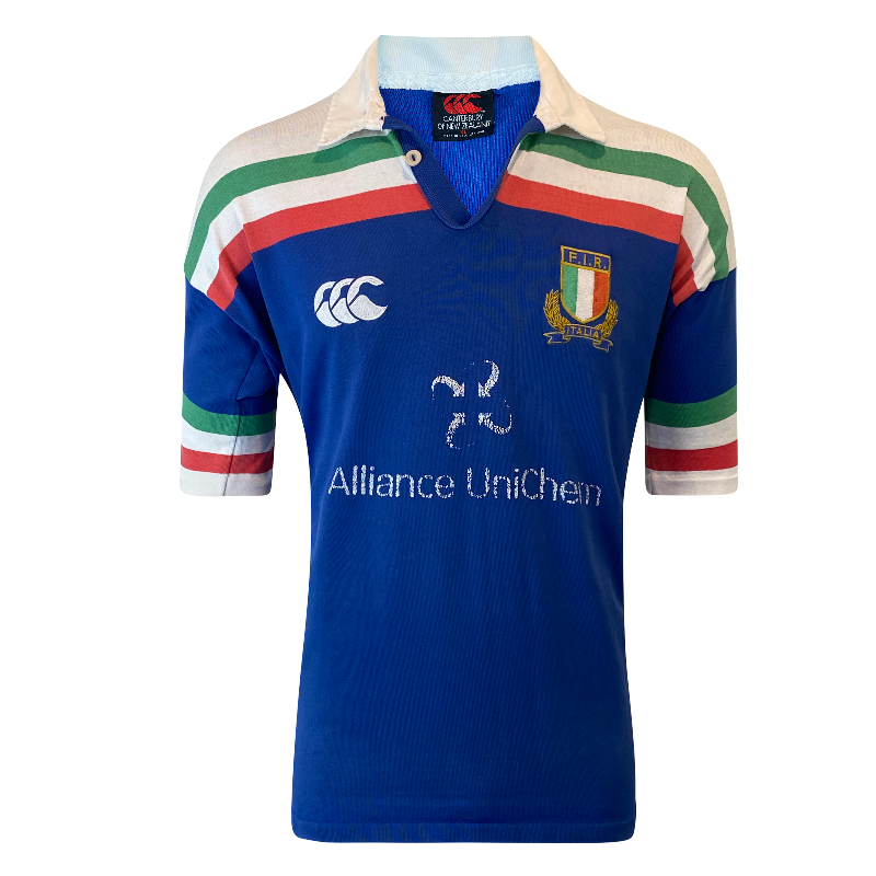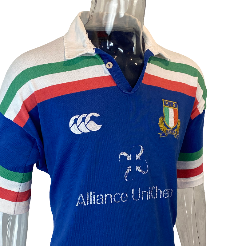 A highly collectible Italy jersey from a unique period in Azzurri rugby history — this 2000 shirt was produced by Canterbury (CCC), who only supplied Italy for a single season. This short-lived partnership has made CCC-produced Italy jerseys some of the most sought-after by collectors. Featuring the classic Italian blue with white collar and tricolore detailing, this jersey is a true throwback to the early Six Nations era.