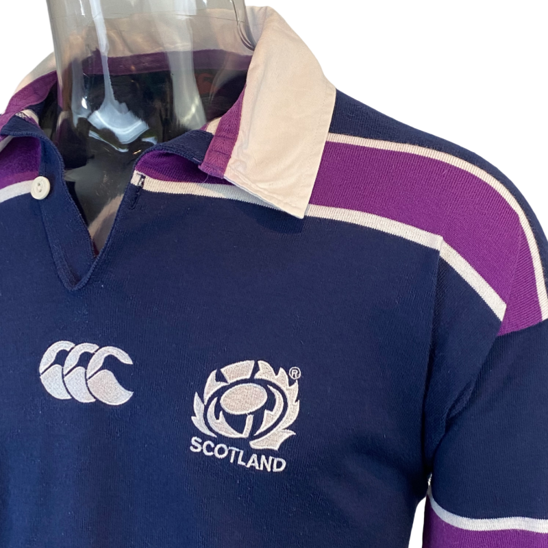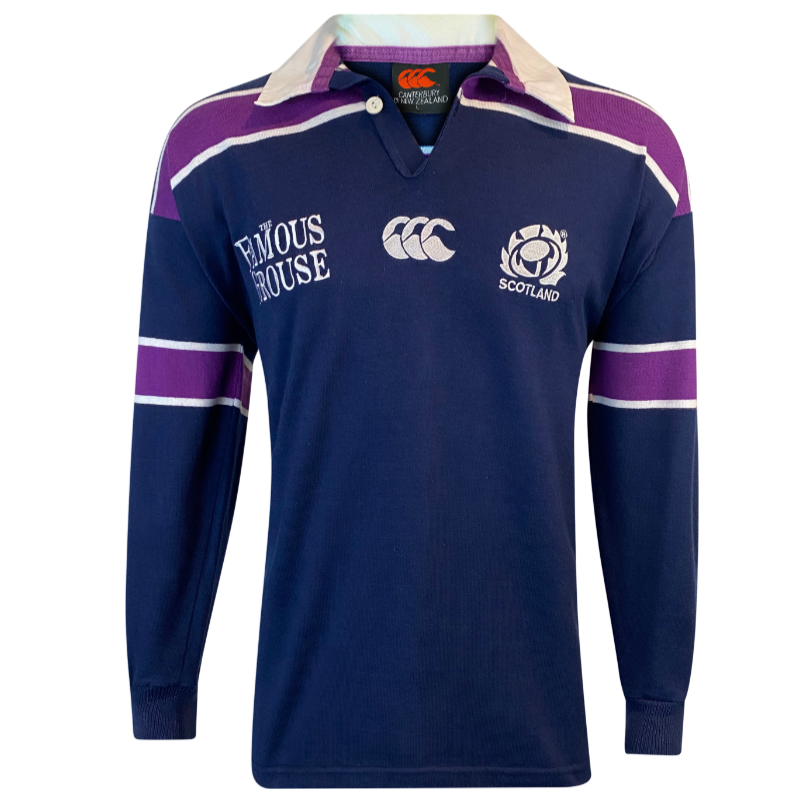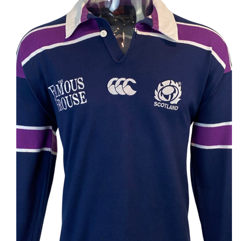The iconic 2000 Scotland long sleeve jersey. Featuring the popular Famous Grouse front logo this Canterbury of New Zealand made jersey is highly popular and most demanded vintage Scottish jersey. Scotland have been a team on the rise so now is a great time to score this jersey for the 2027 Rugby World Cup. This jersey is made in South Africa and is in excellent condition, free of any flaws. The colors or the jersey are also bright showing no signs of wash fade. Score this popular jersey in amazing condition today.