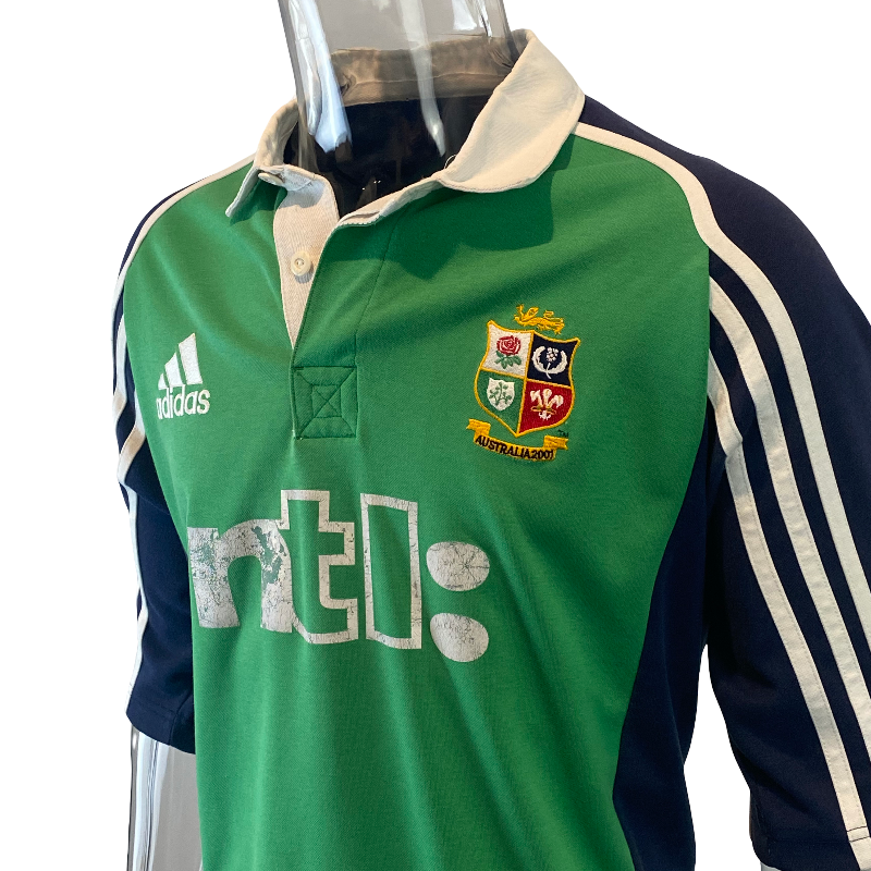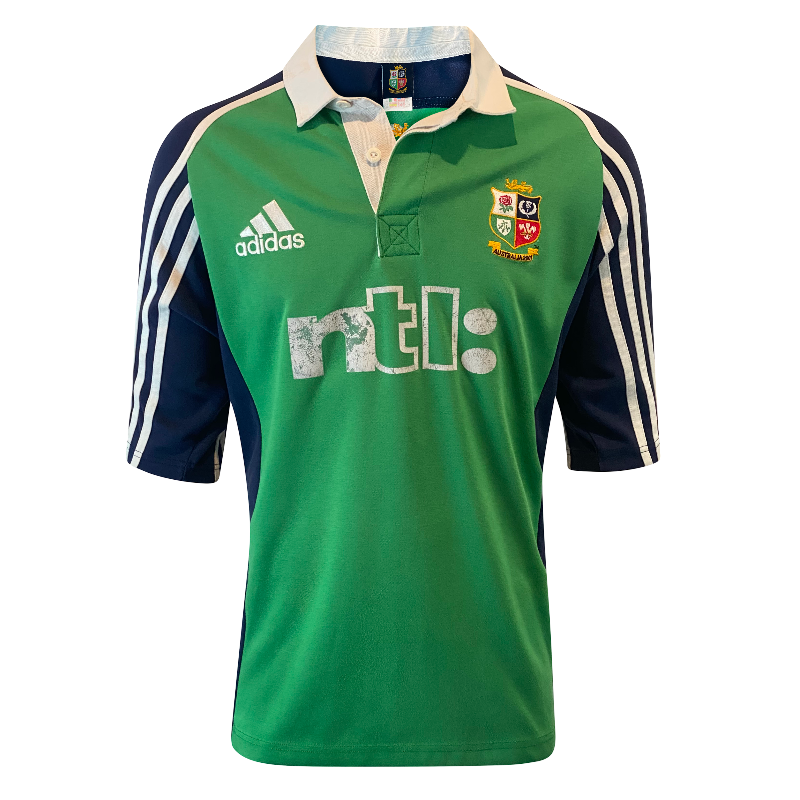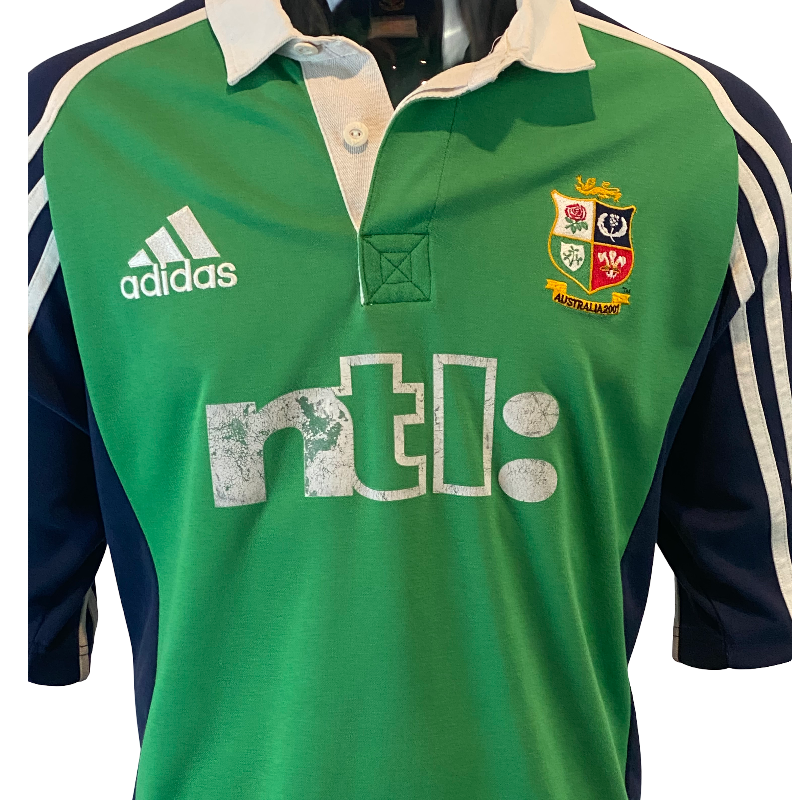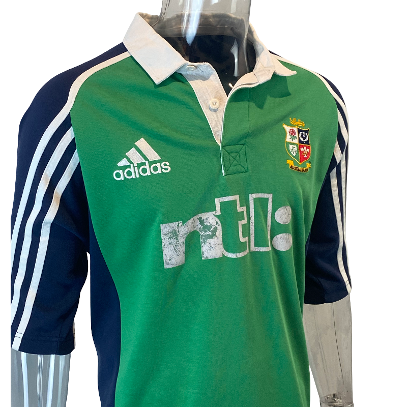 This British and Irish Lions Training Jersey by Adidas is the highly popular green version that has become a firm favourite with Irish fans. A standout piece from the Lions range, it blends classic Adidas quality with the iconic green design that supporters love. The jersey is in good condition overall, with the only note being the NTL sponsor logo — a detail that is typically fragile on these jerseys but in this case is holding up well.