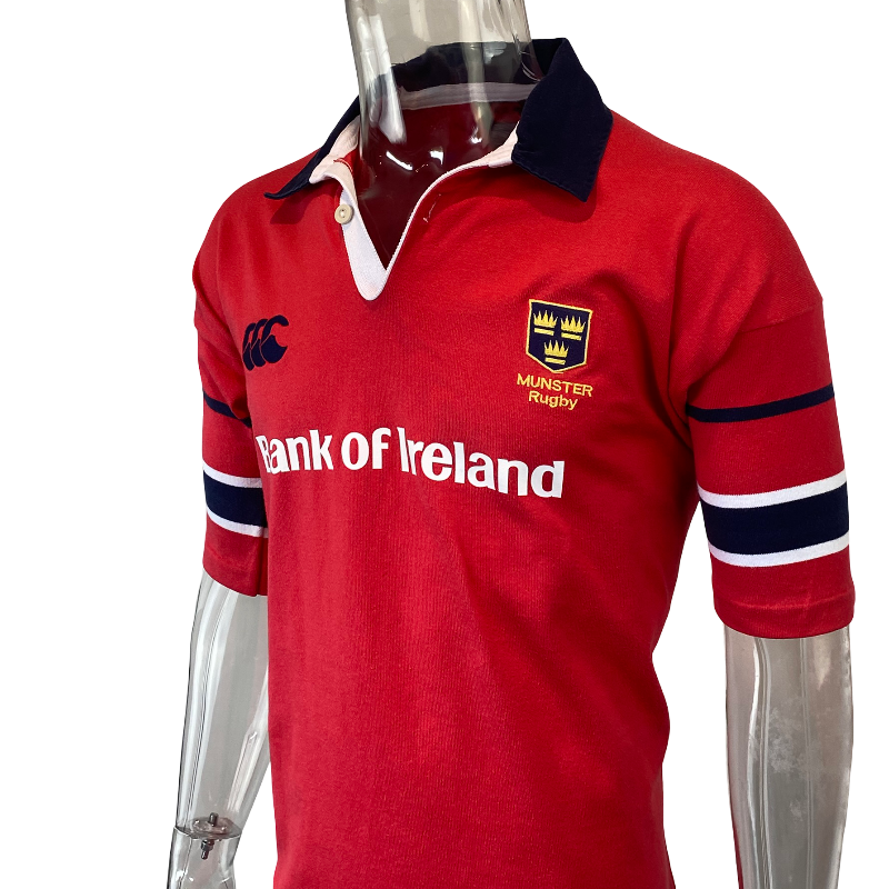 This 2001 Munster home jersey by Canterbury is a hugely popular piece from one of Ireland’s most passionate rugby provinces. Featuring the classic Bank of Ireland sponsor in excellent condition, the jersey presents incredibly well for its age and remains one of Munster’s most recognisable early-2000s designs. Munster’s supporter base is famously loyal and fiercely proud, and jerseys from this era carry real meaning for fans who followed the club through its rise in European rugby.