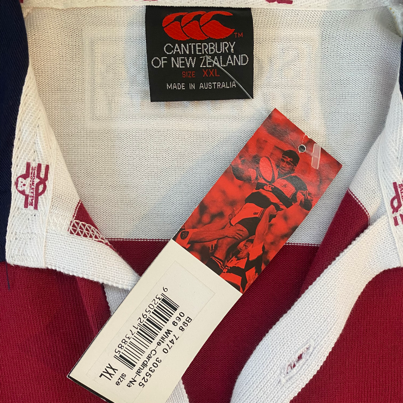 This 2001 Queensland Reds alternate rugby jersey by Canterbury of New Zealand is a true Ballymore throwback special. Hugely popular among collectors and Reds fans alike, this rare find still has its original tags attached, making it an exceptional piece of early-2000s Super Rugby history.