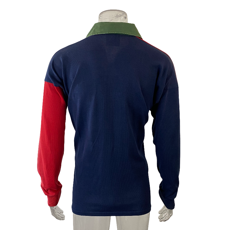 The body of the jersey is in excellent condition, retaining vibrant colours and a comfortable feel. The only flaw is some sun fade on the collar and sleeve—an authentic touch that adds character and reminds you this piece has been part of rugby history.