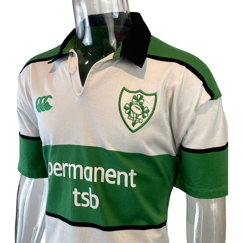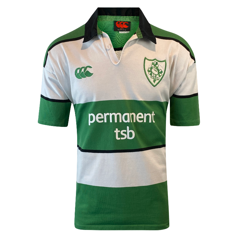 Here is a popular 2002 Ireland alternative jersey. These jerseys are a simple yet impressive design mixing in traditional Irish green with white. Made by Canterbury of New Zealand it’s a high-quality jersey as are all CCC rugby jerseys made in this era. This jersey is in excellent condition, colors are still bright, logo is in pristine condition. Grab your vintage Ireland rugby jersey now for a huge year of international rugby.