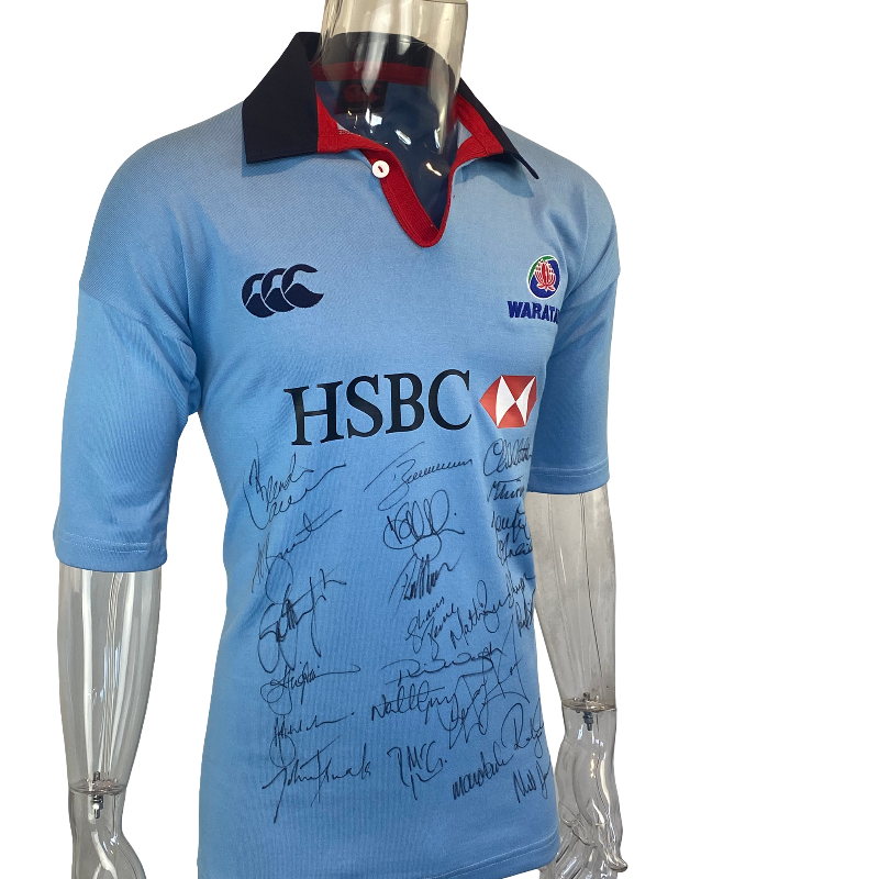 This 2002 NSW Waratahs jersey by Canterbury is an outstanding signed collectors piece, complete with its original retail tags still attached. The jersey carries signatures from the Waratahs squad, making it a rare and highly displayable item from one of Australian rugby’s most recognisable teams.