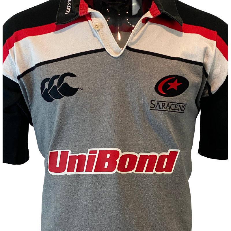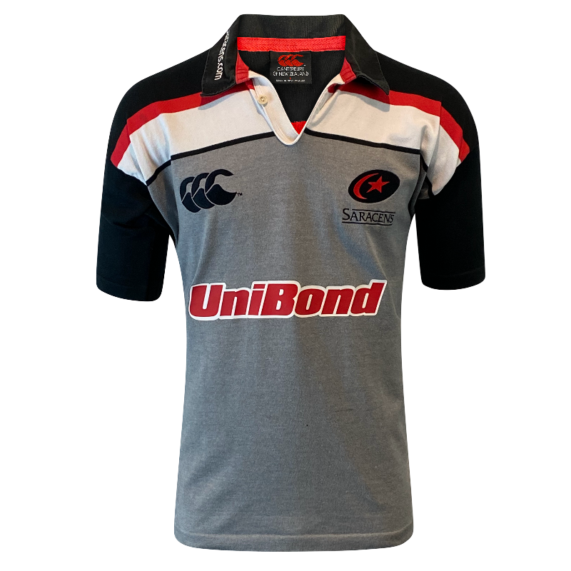Based in North London, Saracens are one of the most successful Premiership Rugby clubs of the modern era, with multiple league titles and European championships to their name. This training jersey captures the club’s identity during the period when they were building towards becoming a powerhouse in English rugby.