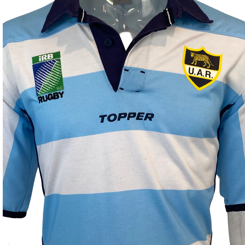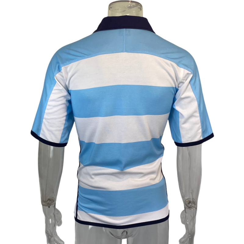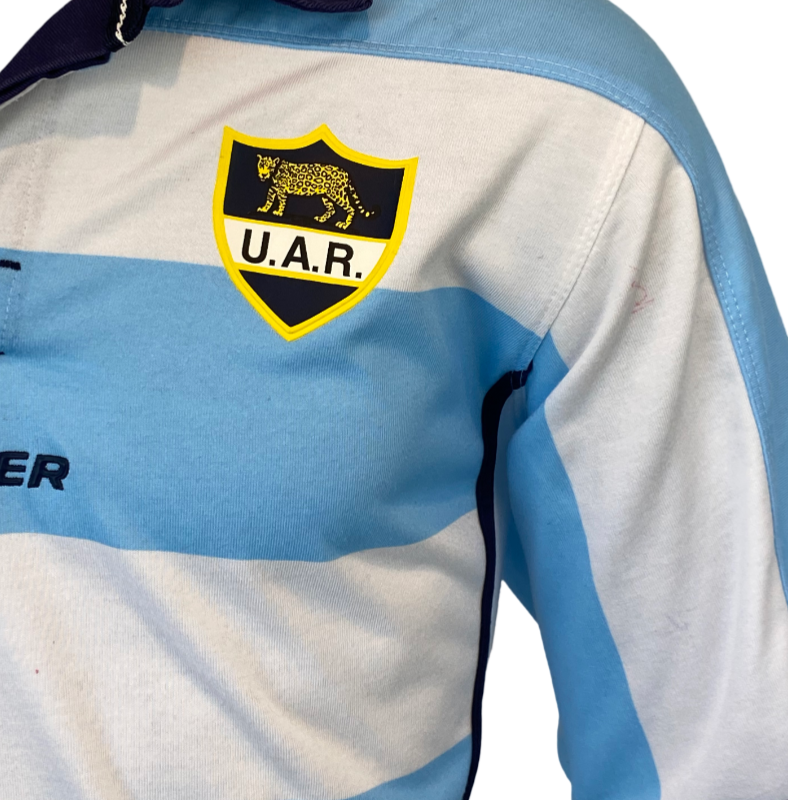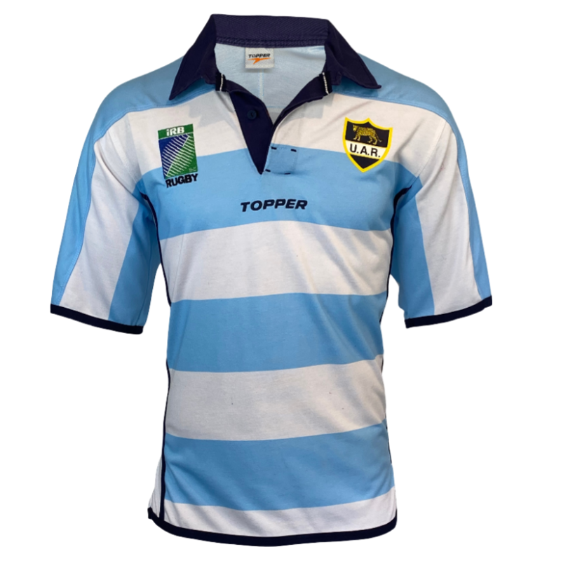 This 2003 Argentina Pumas jersey is impressive. With its iconic colors and being a 2003 World Cup edition its a striking jersey and one for either a passionate Pumas fan or a collector. Argentina sport some of the best colors in international rugby and this jersey is no exception. Made by Topper. Tagged Small but pit to pit wise is more a Medium but fits a Small in length.