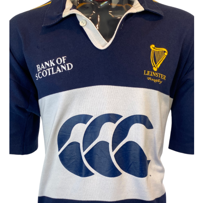 This is a rare 2003 Leinster training jersey that is in excellent condition. Made by Canterbury of New Zealand featuring the iconic CCC front logo. This classic jersey also features the Bank of Scotland logo fully embroidered onto the front and the sleeve. Here is your chance to score a rare Leinster training jersey that is over 21 years old.