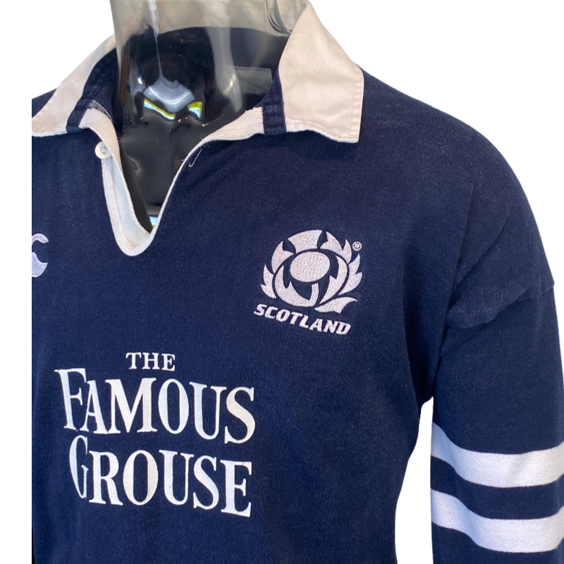 Up for grabs is this 2003 Scotland Long Sleeve jersey. A popular and iconic jersey with the Famous Grouse front logo. The jersey is in excellent condition with only flaw being a missing sizing tag. The measurements are aligned to a modern day Large to XL. The body of the jersey is free of any holes or stains. A great jersey to score before the 2025 Lions tour to Australia or gearing up for the 2027 Rugby World Cup.