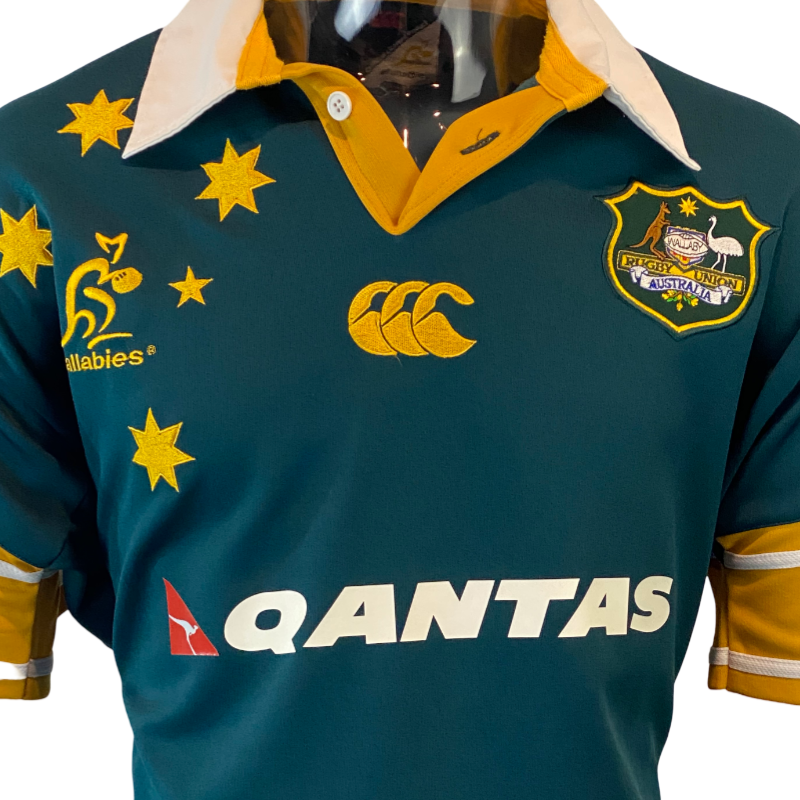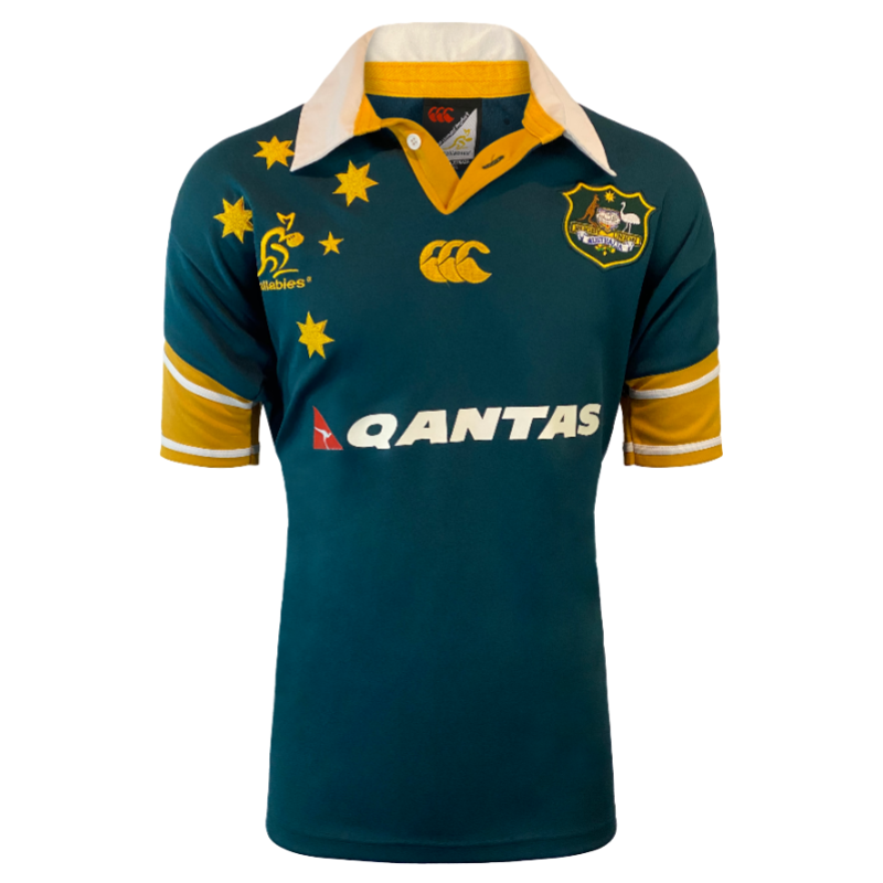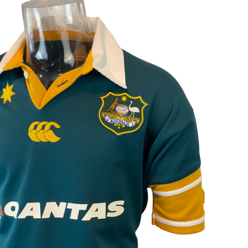 Up for grabs is 2003 Wallabies alternative jersey. While reserved for jersey clashes this particular jersey was never actually worn by the team on the field. Featuring the Qantas logo across the front this jersey made by Canterbury of New Zealand is in excellent condition. A super unique rugby jersey to add to a collection or wear during this years Lions tour.