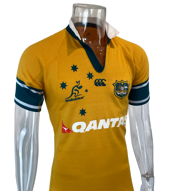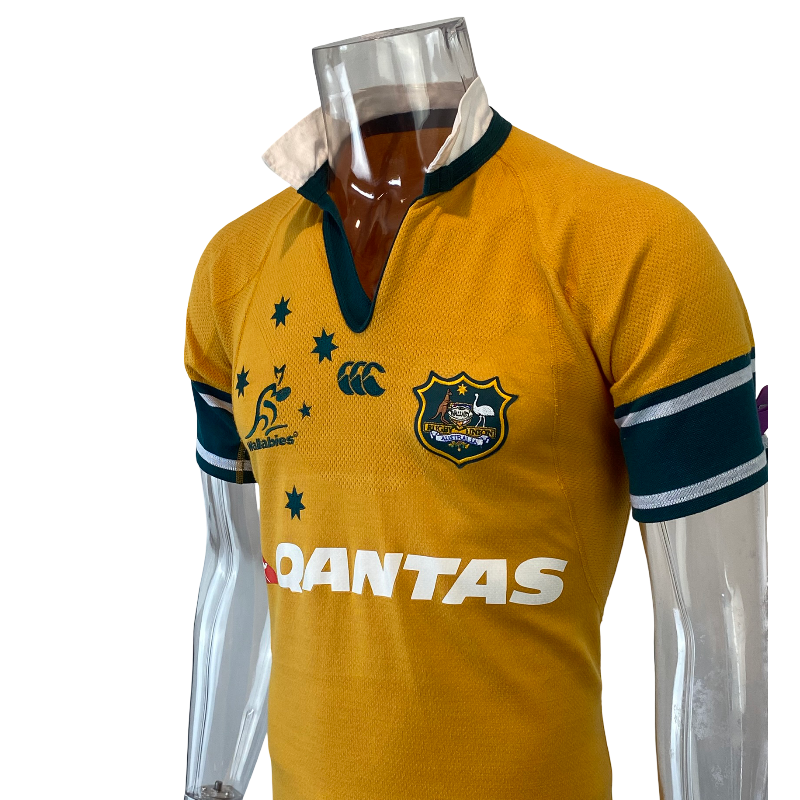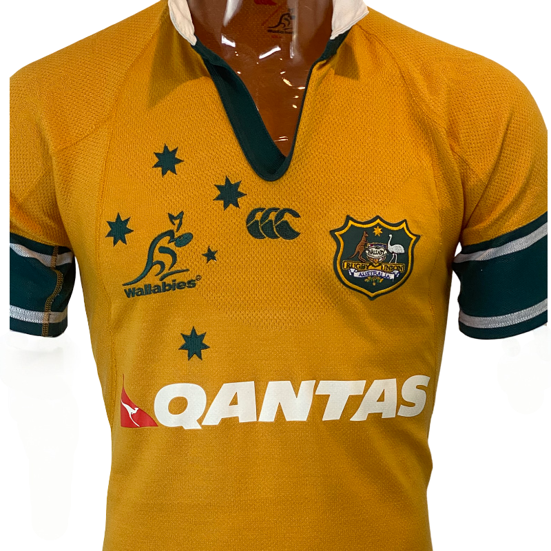 This 2003 Wallabies player spec jersey by Canterbury of New Zealand is a rare, performance-focused version produced to player specifications rather than the standard retail replica. While not match-issued, player spec jerseys were built with a tighter cut, lighter materials and a more athletic fit, making them noticeably different to the jerseys sold to fans at the time.