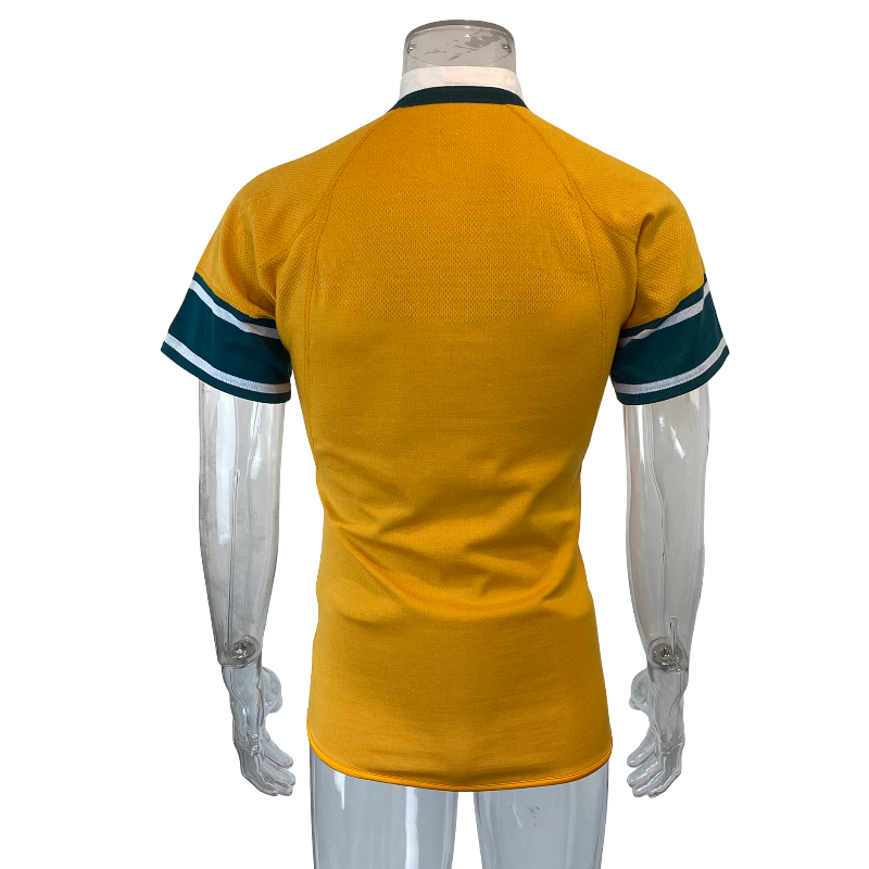 Tagged Medium but fitting small due to its player spec cut, this jersey is in excellent condition with no notable flaws. A unique and collectible Wallabies jersey from the early professional era, ideal for collectors who appreciate rare variations and authentic on-field design.