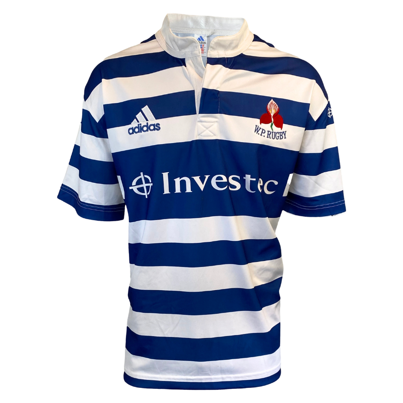 This classic Western Province jersey featuring the clubs iconic blue and white colours. This large-fitting jersey is in excellent condition however sizing is 1 to 2 sizes bigger than tagged XL and fits more XXL to 3XL.