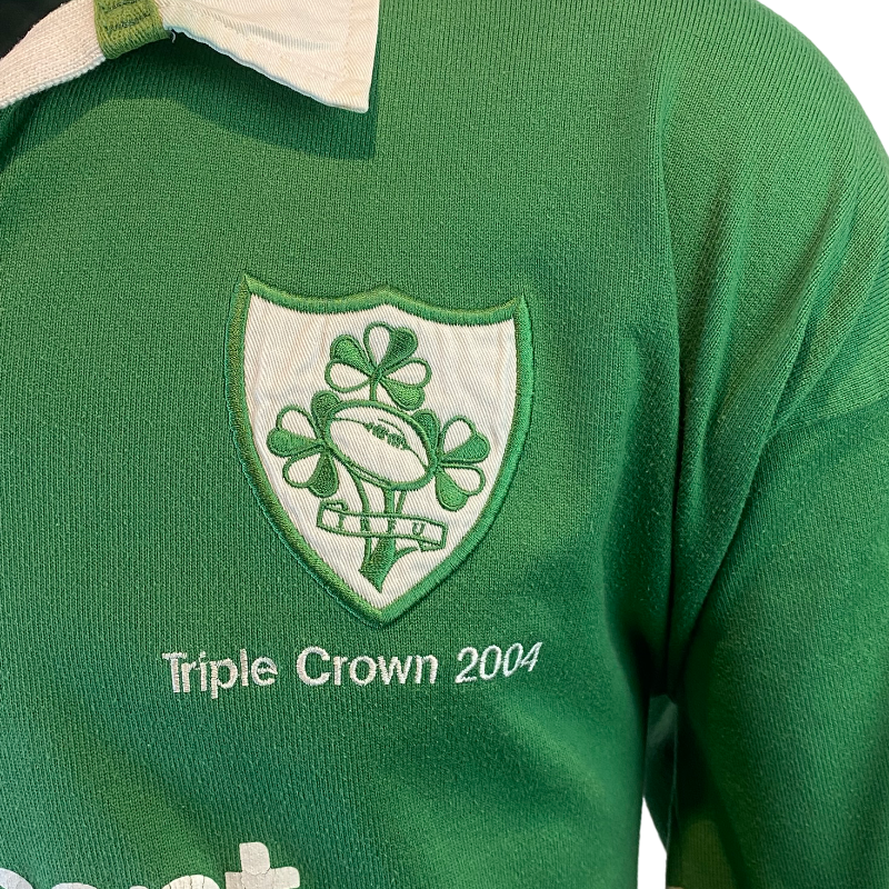 A standout piece of Irish rugby history, this 2004 Ireland long sleeve jersey celebrates a memorable Triple Crown-winning campaign. Produced by Canterbury, it features the iconic green design with “Triple Crown 2004” embroidery beneath the crest—marking a significant achievement and elevating this beyond a standard release into a truly collectible version.