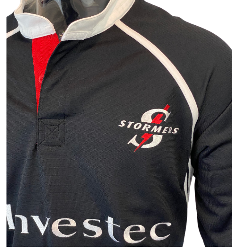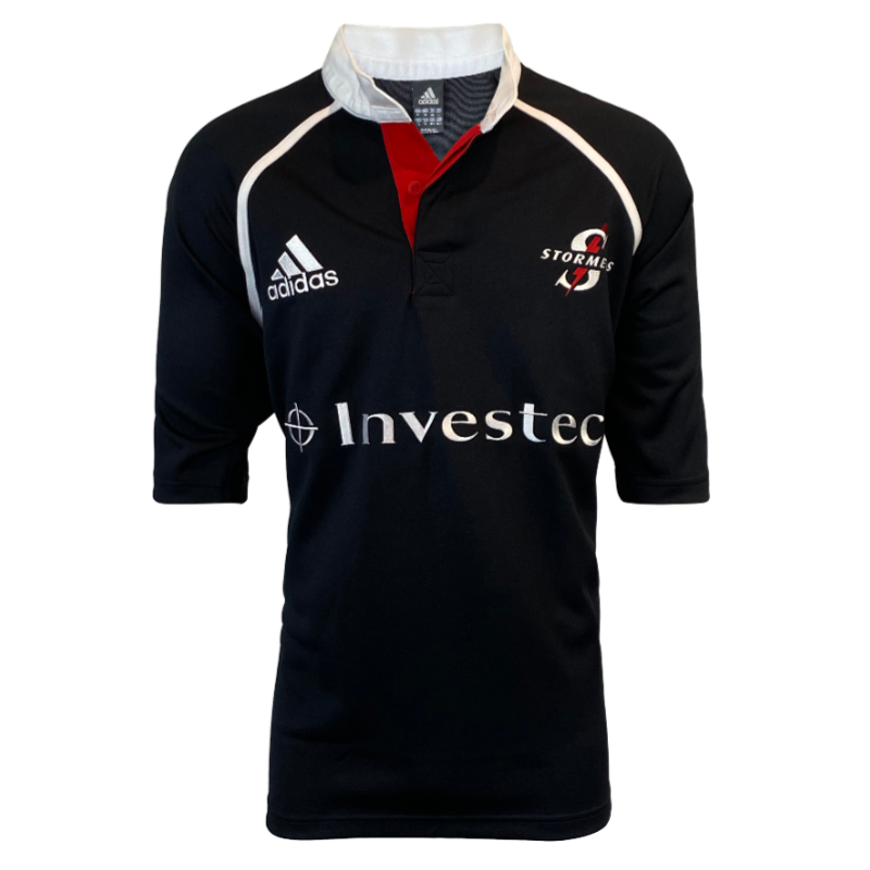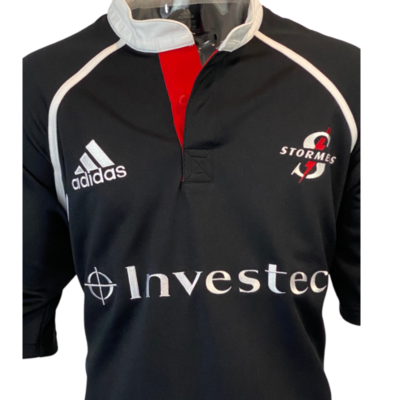 Here is a chance to grab a brand new 2004 Stormers jersey. Excellent condition jersey that has been stored well for 21 years as its in new condition. Excellent looking black jersey that is a big fitting jersey that fits between XL and XXL. No flaws on this tagged jersey at all.