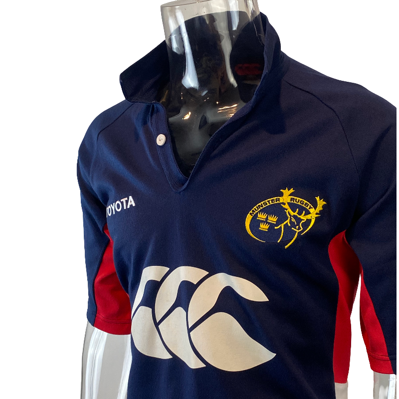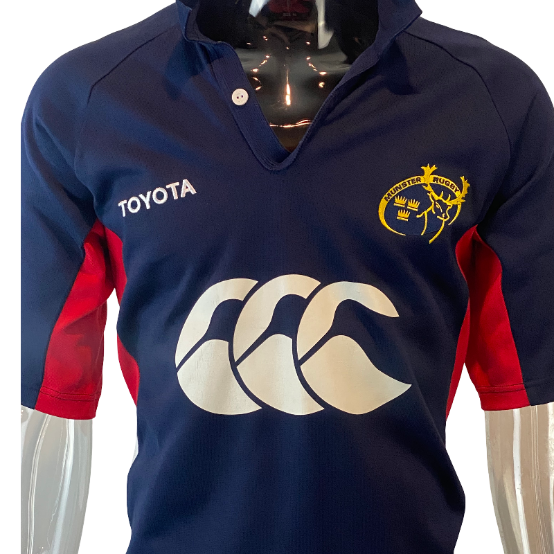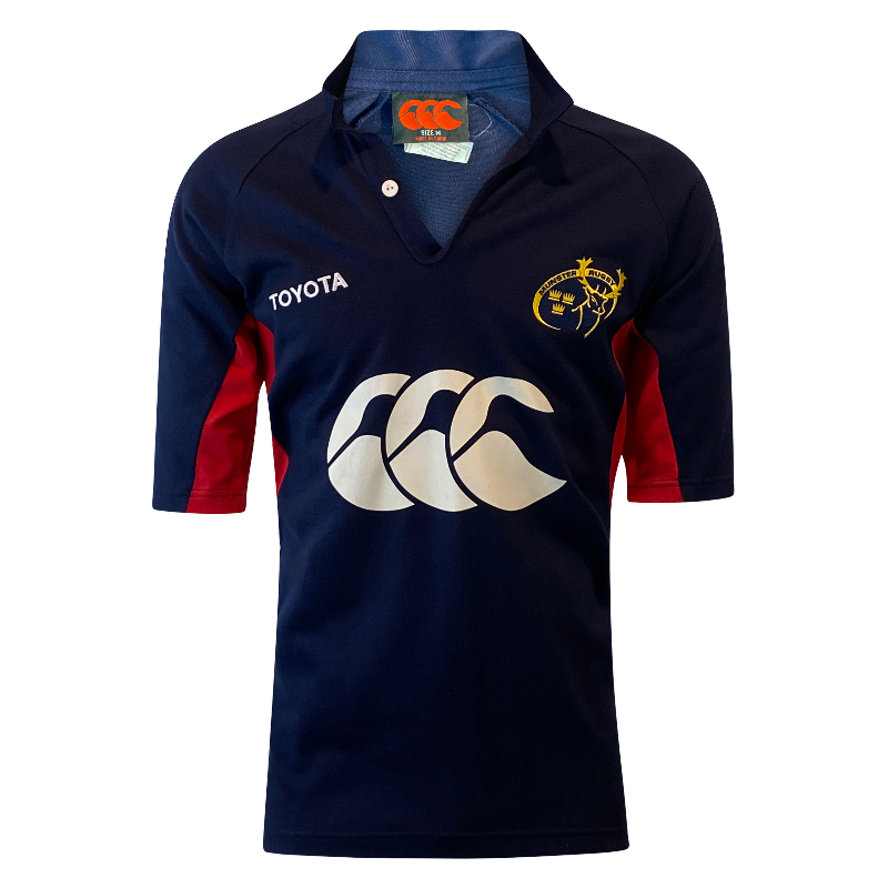 This 2005 Munster training jersey, made by Canterbury of New Zealand (CCC), is a standout piece for any true Munster fan. Featuring a bold CCC logo across the front, this navy training jersey blends classic Canterbury durability with Munster pride. It includes a stylish half collar and is in excellent near-new condition, showing minimal signs of wear. A clean, understated design that still packs plenty of character — ideal for training, casual wear, or the diehard collector.