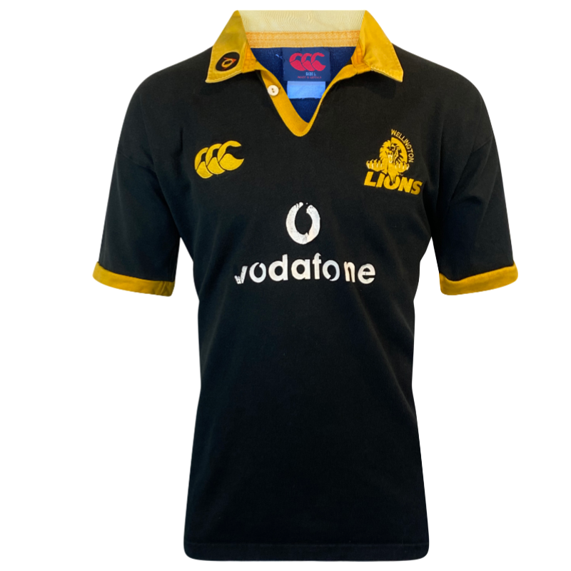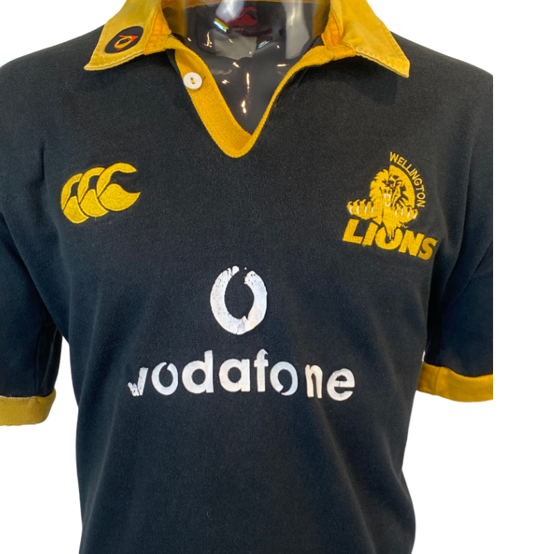 Up for grabs is this 2005 Wellington jersey as worn against the British and Irish Lions in 2005. The jersey features a sleeve patch incorporating the game and date. The body of the jersey is in good condition however the front Vodafone logo is in poor condition and is peeling. It’s hard to believe that much hyped Lions tour of New Zealand was 20 years ago.