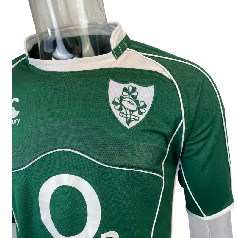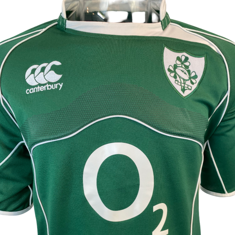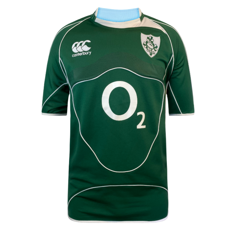 This 2007 Ireland short sleeve jersey is a unique Canterbury of New Zealand design. Featuring the prominent O2 logo on the front. This jersey is in excellent condition free of any flaws.
