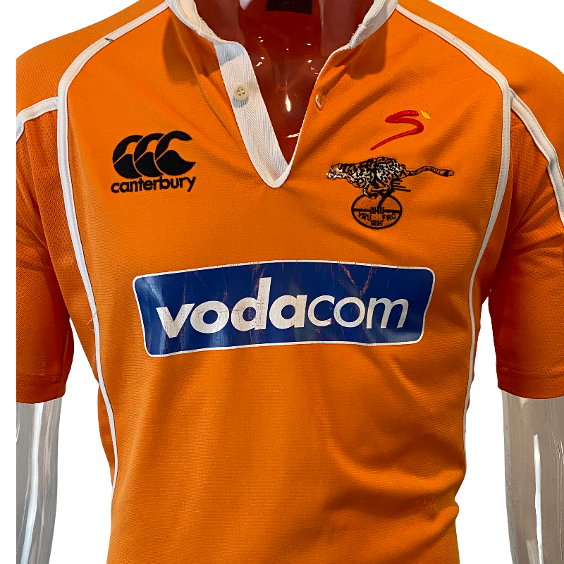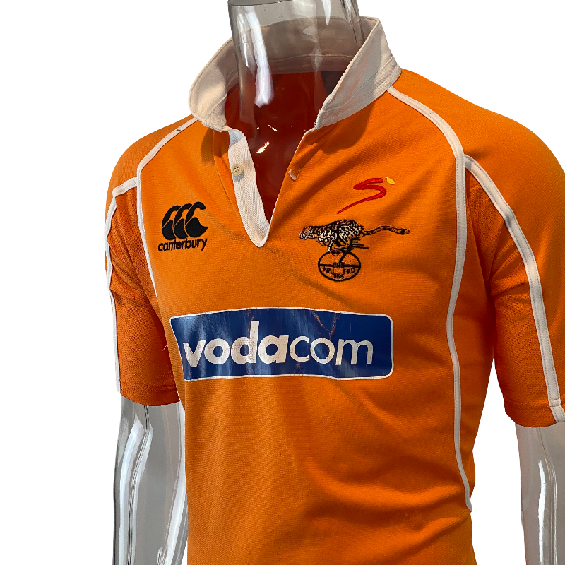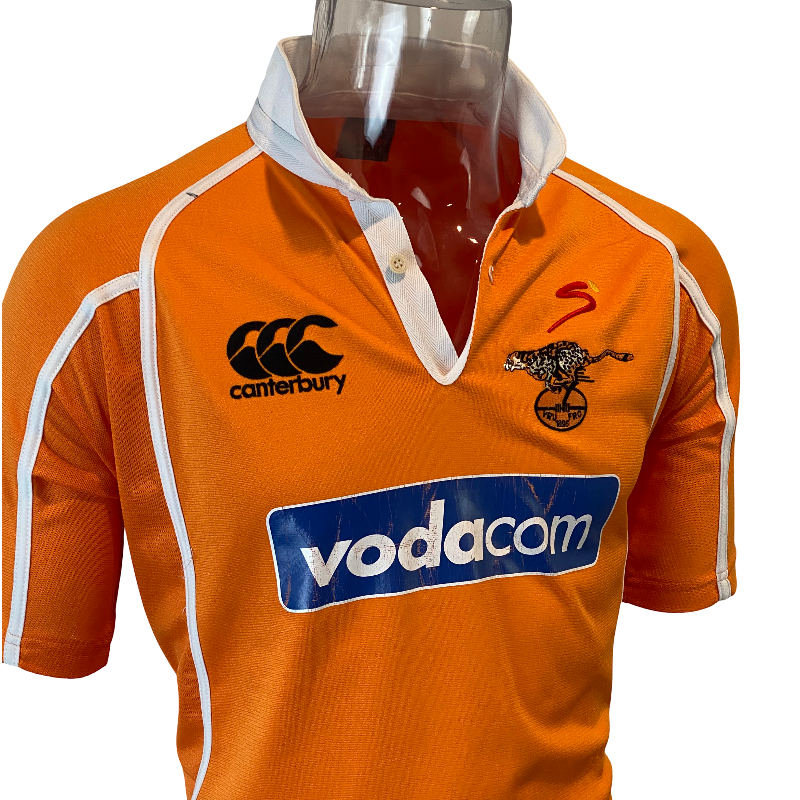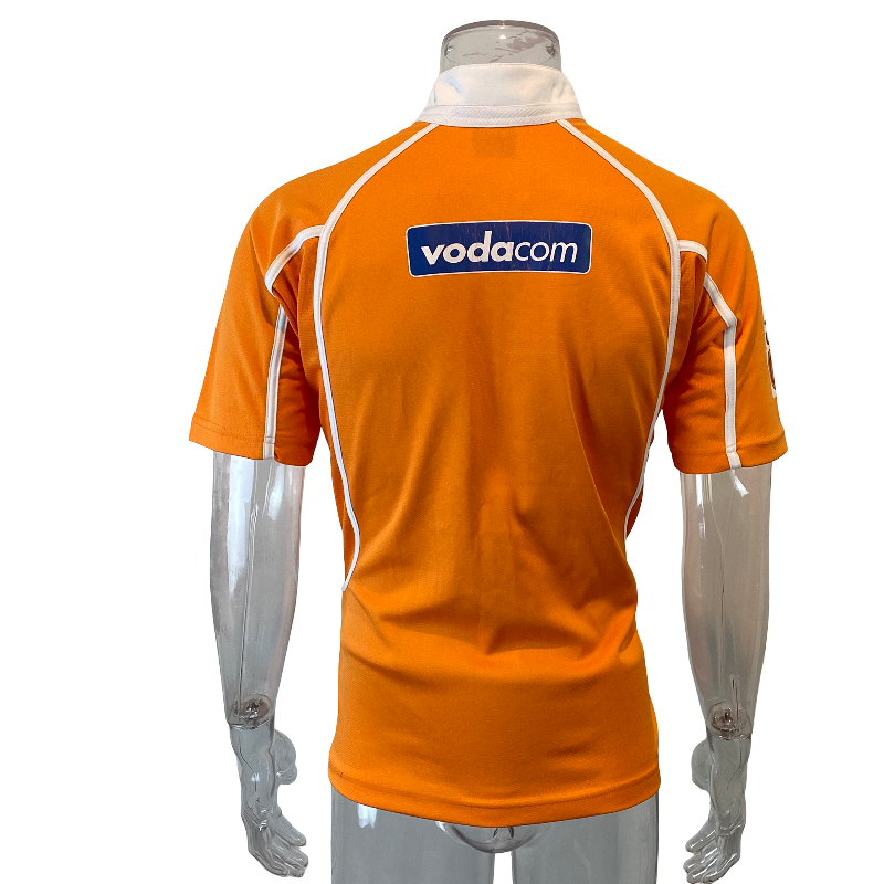 Stand out with this vibrant 2008 Cheetahs alternate rugby jersey, made by Canterbury of New Zealand. Featuring the team’s trademark bright orange design and bold Vodacom sponsor across the chest, this jersey is a fan favourite from South Africa’s Super Rugby era.