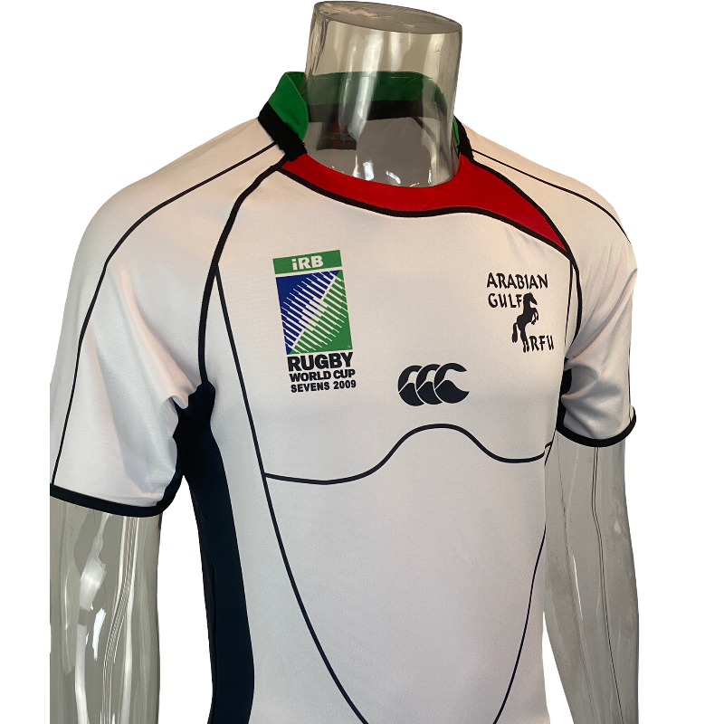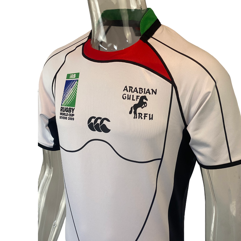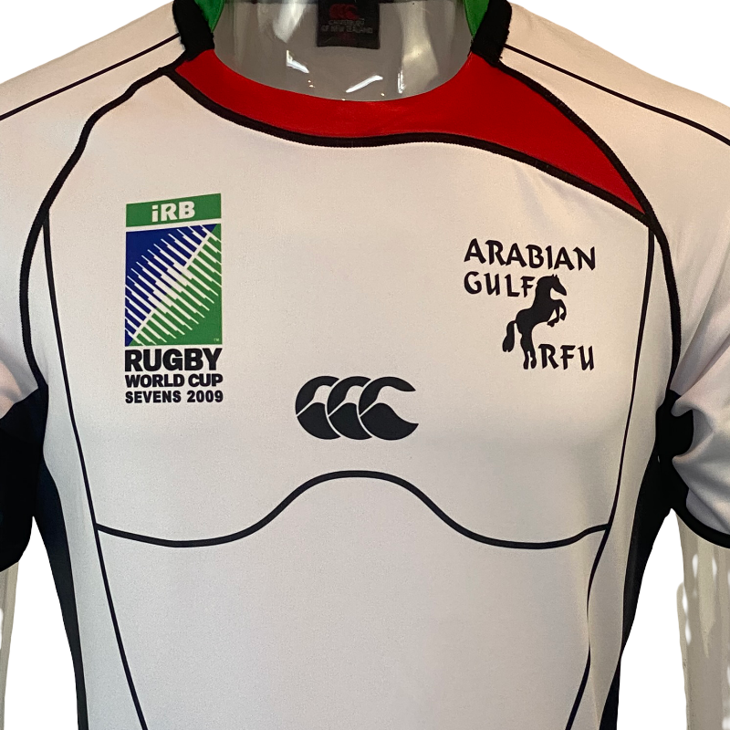 This 2009 Arabia World Cup jersey was produced by Canterbury of New Zealand for the Rugby World Cup Sevens, representing one of the lesser-seen nations on the global rugby stage. Arabia competed during the tournament as part of the emerging rugby regions, making this jersey a genuine snapshot of international sevens beyond the traditional powerhouses.