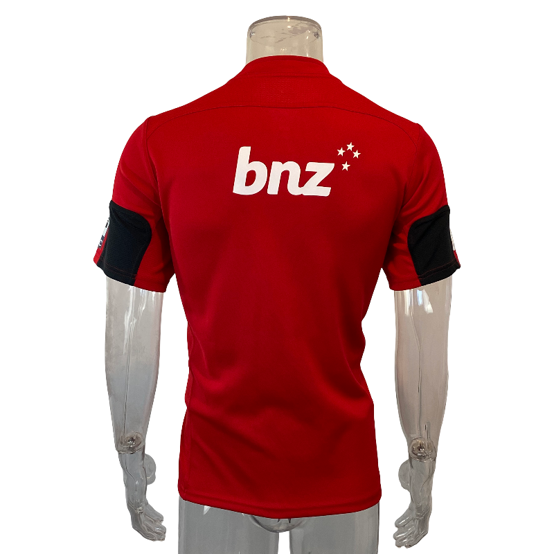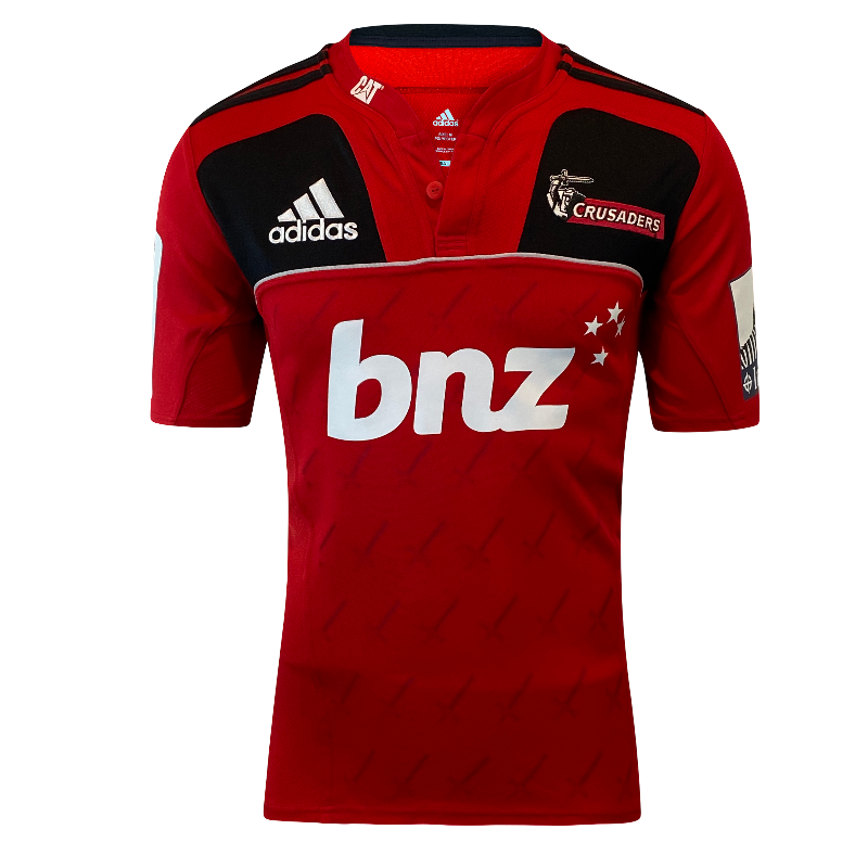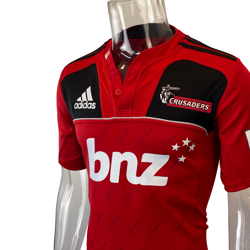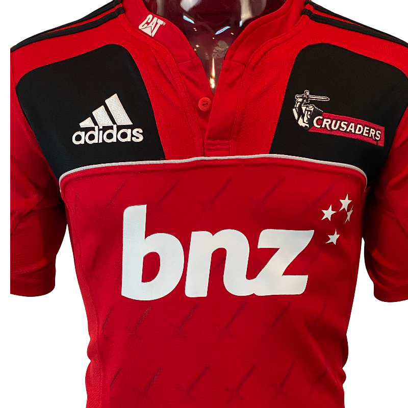 This is a 2011 Crusaders Super Rugby home jersey, tagged Medium and presented in excellent condition with minimal signs of wear. The 2011 season holds a special place in Crusaders history, as the devastating Christchurch earthquake forced the team to play every match away from home. In a remarkable show of resilience, the Crusaders even played fixtures as far afield as London and battled their way to the final, narrowly losing to the Queensland Reds. This jersey is a lasting tribute to that extraordinary season and a must-have for any Crusaders supporter or Super Rugby collector.