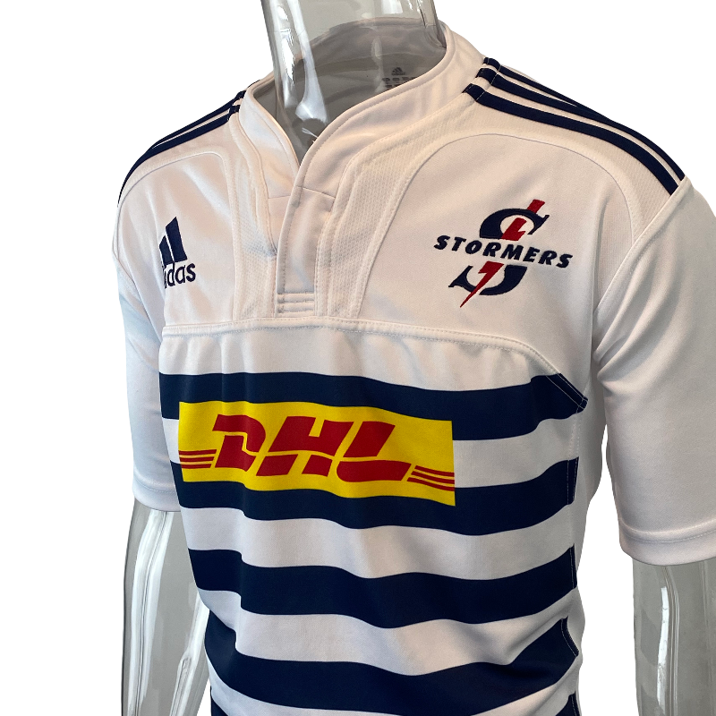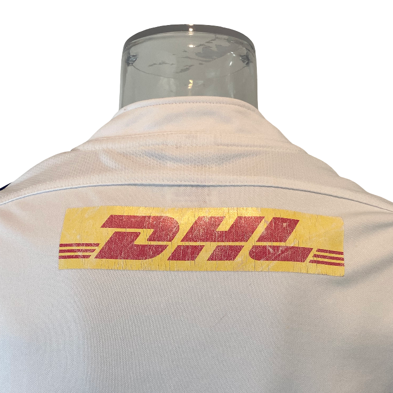 The jersey is in very good condition overall, with only minor signs of wear: some fading to the back DHL logo and sleeve prints, and a small mark near the left armpit. Stormers jerseys from this era remain highly sought after, and their long-standing loyalty to Adidas produced some fantastic designs — this one included.