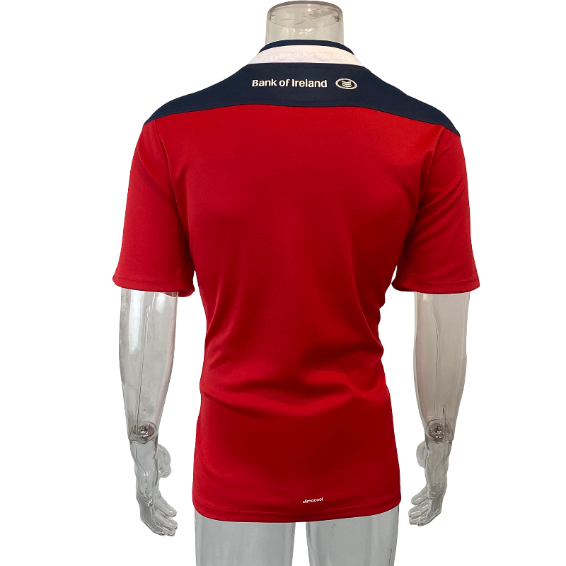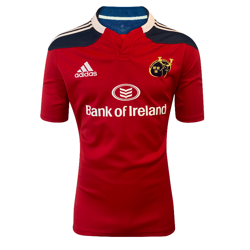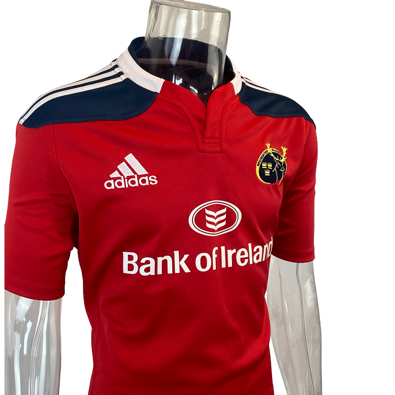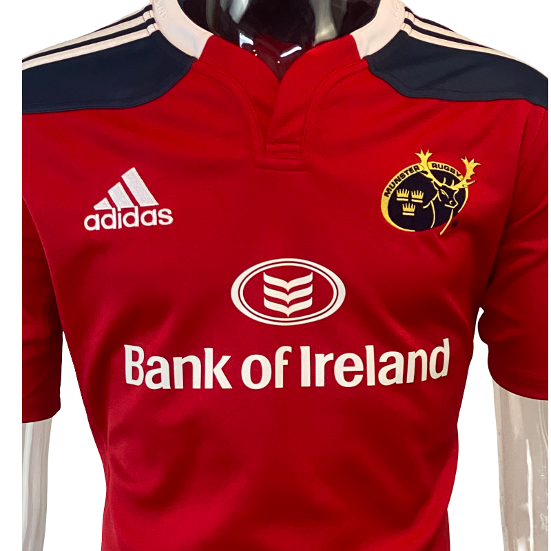 This 2013 Munster home jersey from the Adidas era is an iconic modern release from one of rugby’s most storied and passionately supported clubs. Finished in the traditional Munster red and featuring the Bank of Ireland sponsor across the front, this jersey is instantly recognisable and closely associated with the club’s identity both on and off the field.
